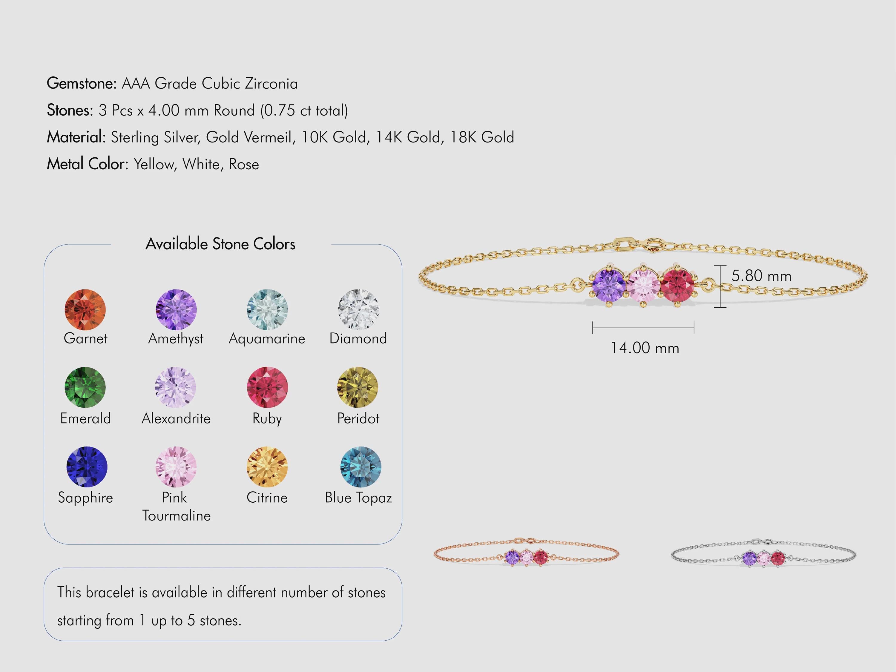 Create your own story by choosing one or more birthstones — each stone represents someone special in your life. As you add additional birthstones, the price adjusts automatically, making it easy to design a unique family or friendship bracelet.