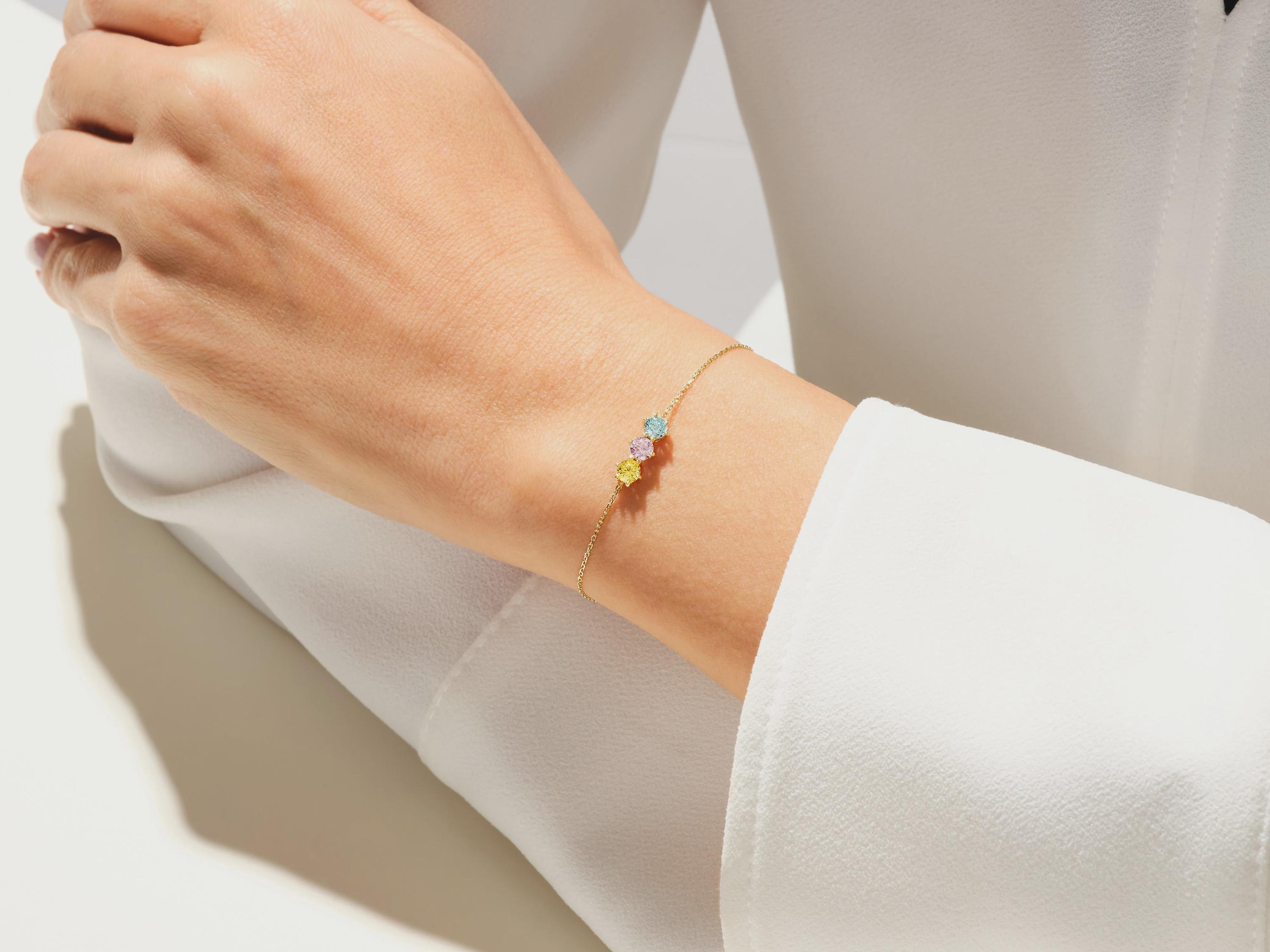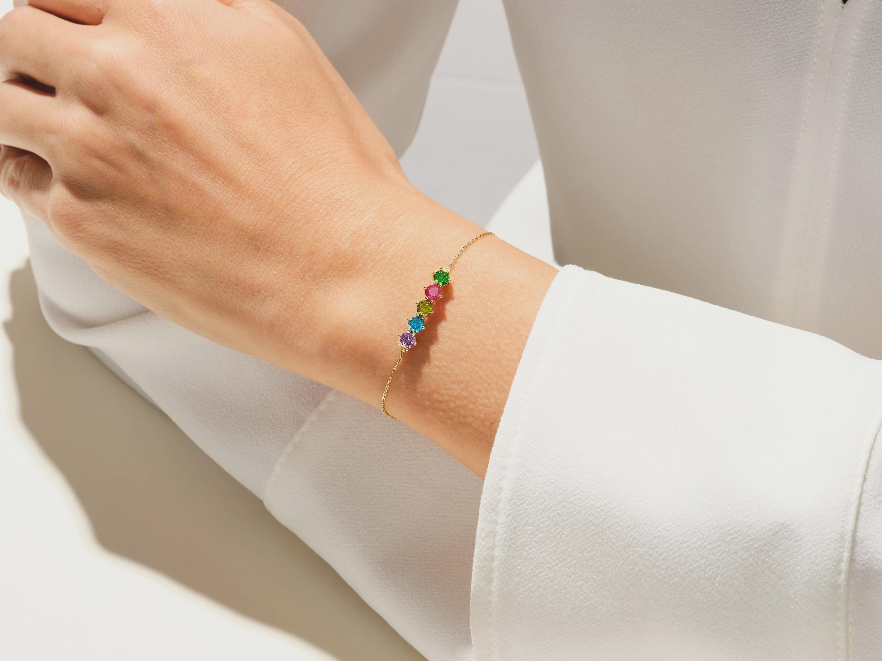 Celebrate the people you love with this personalized birthstone bracelet, handcrafted with care in our jewelry atelier. Each delicate stone measures 3.5mm, adding just the right amount of sparkle and meaning to your wrist.