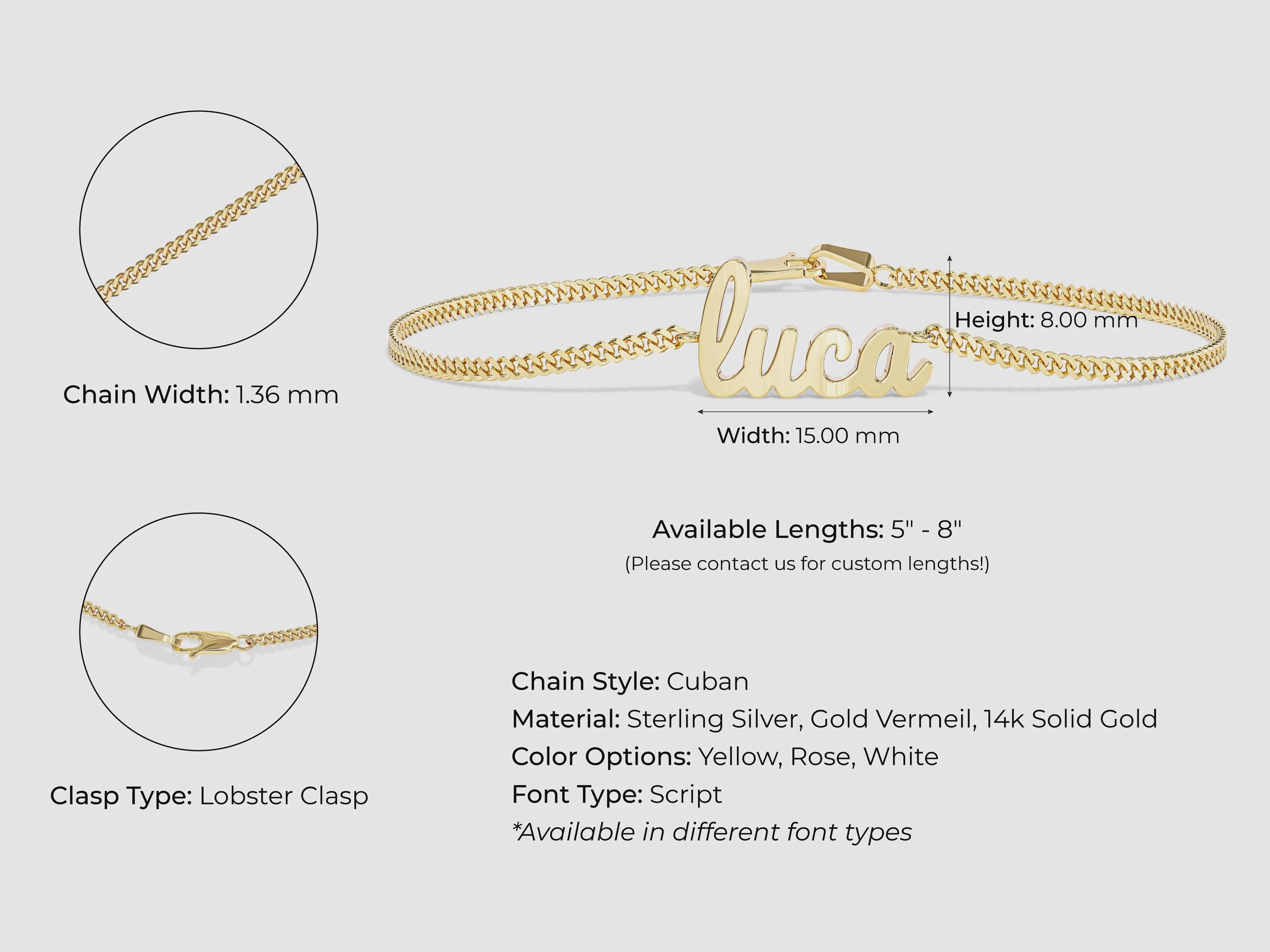 Make your style truly personal with this custom name Cuban chain bracelet, crafted for both men and women. Each bracelet is handmade with care in our jewelry atelier, featuring a bold and elegant Cuban link design that never goes out of style.