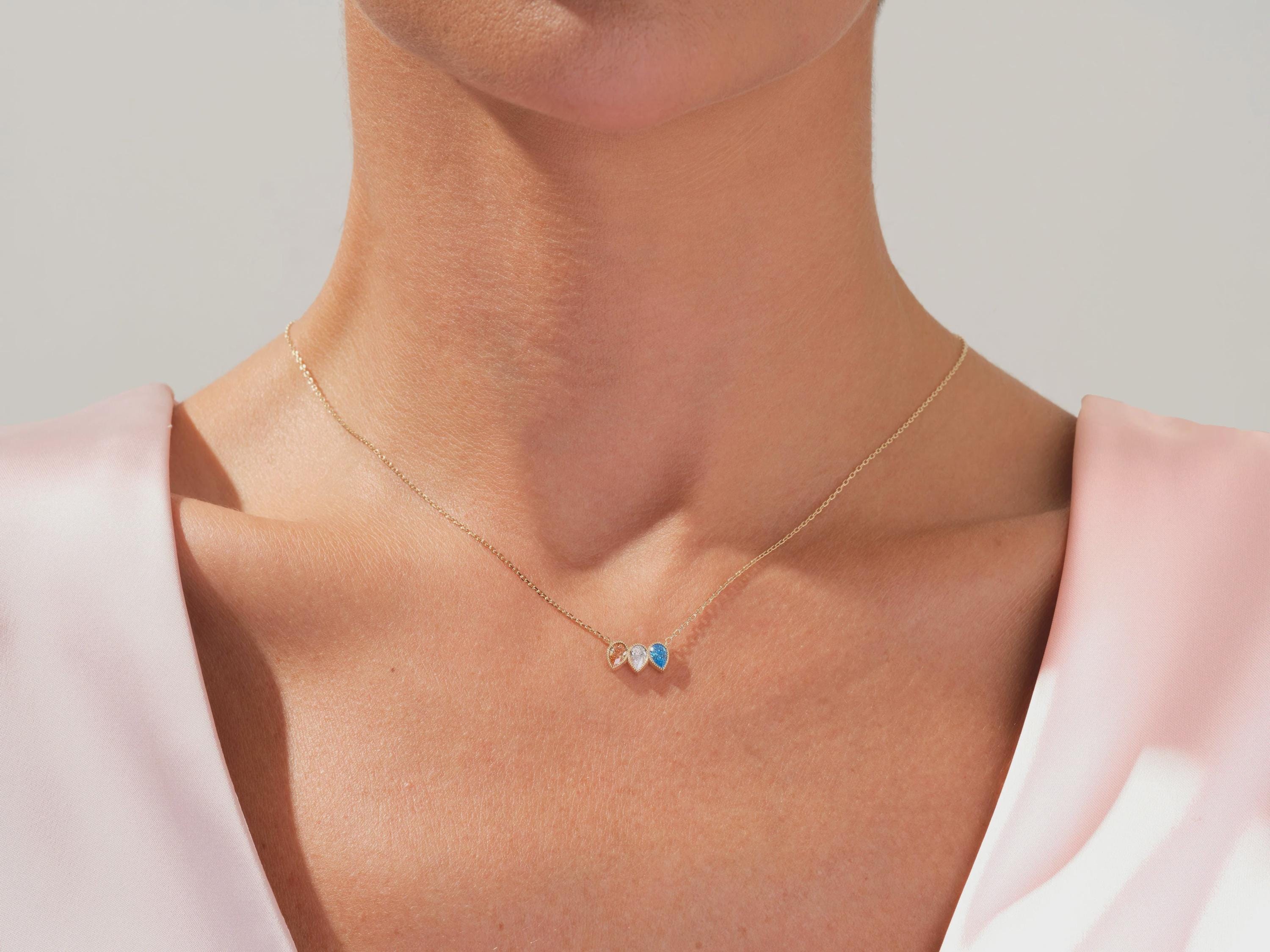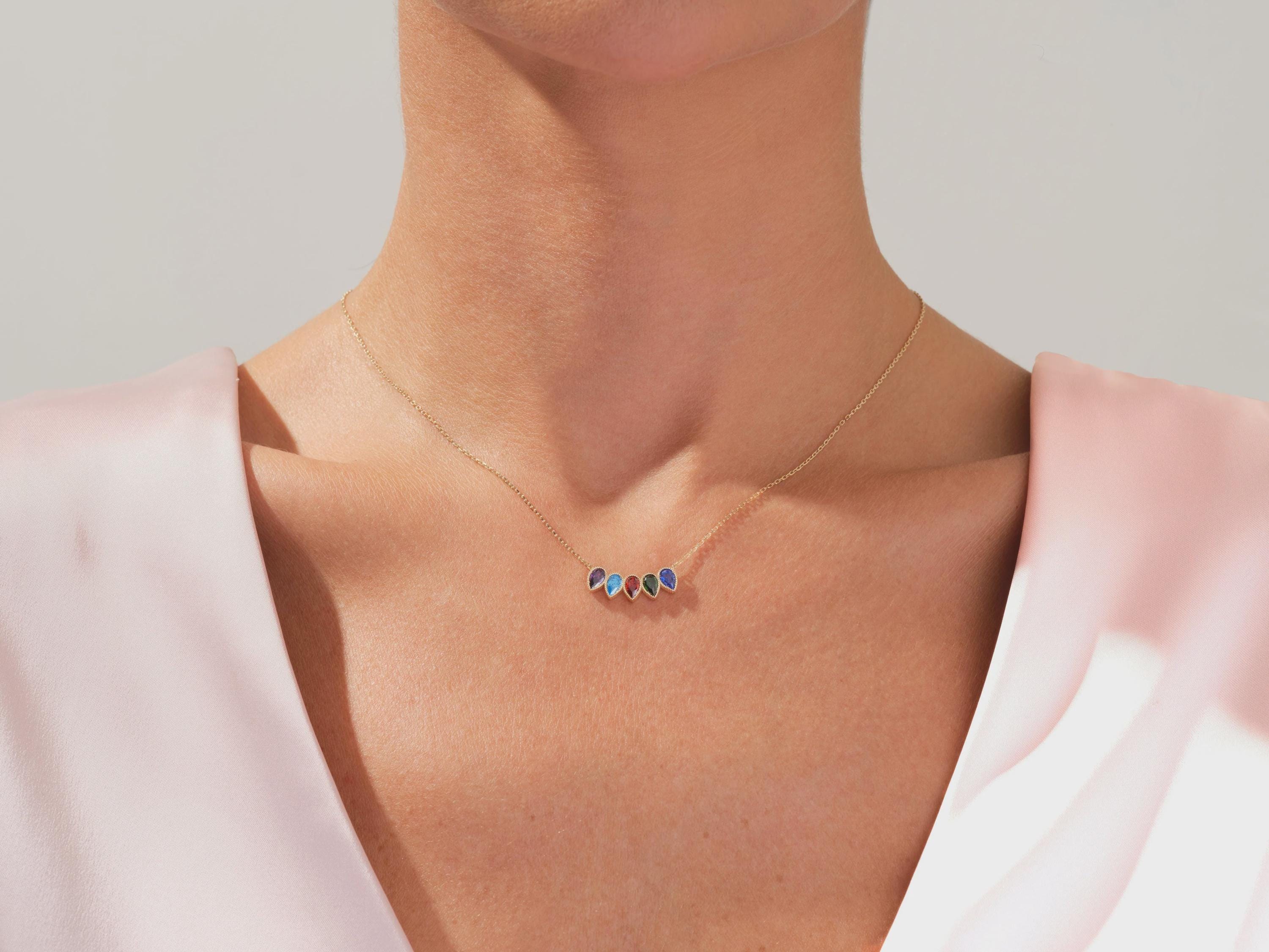Available in rose gold and silver finishes, this necklace can be personalized with one or multiple stones, making it a perfect gift for mothers, grandmothers, or anyone who cherishes family connections.