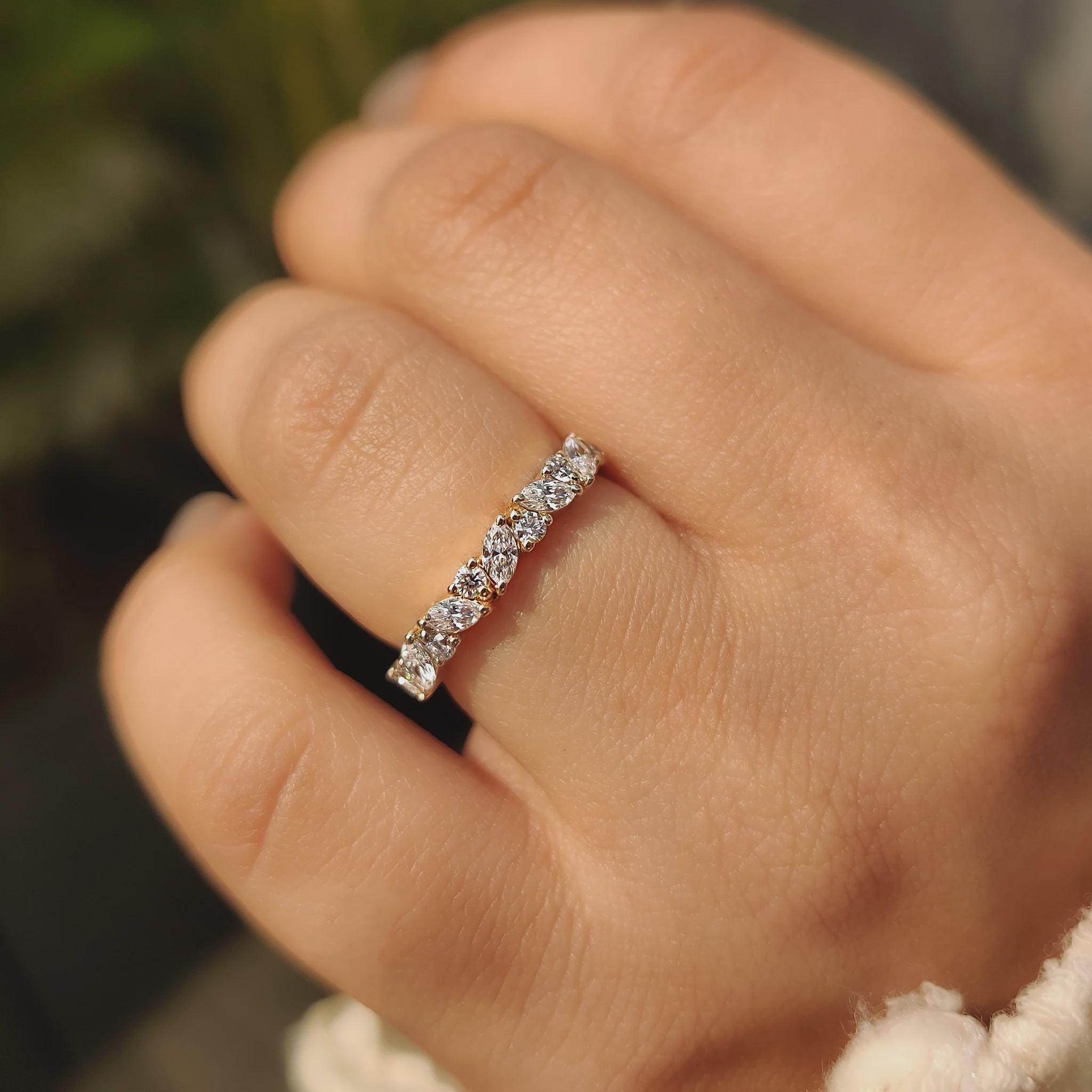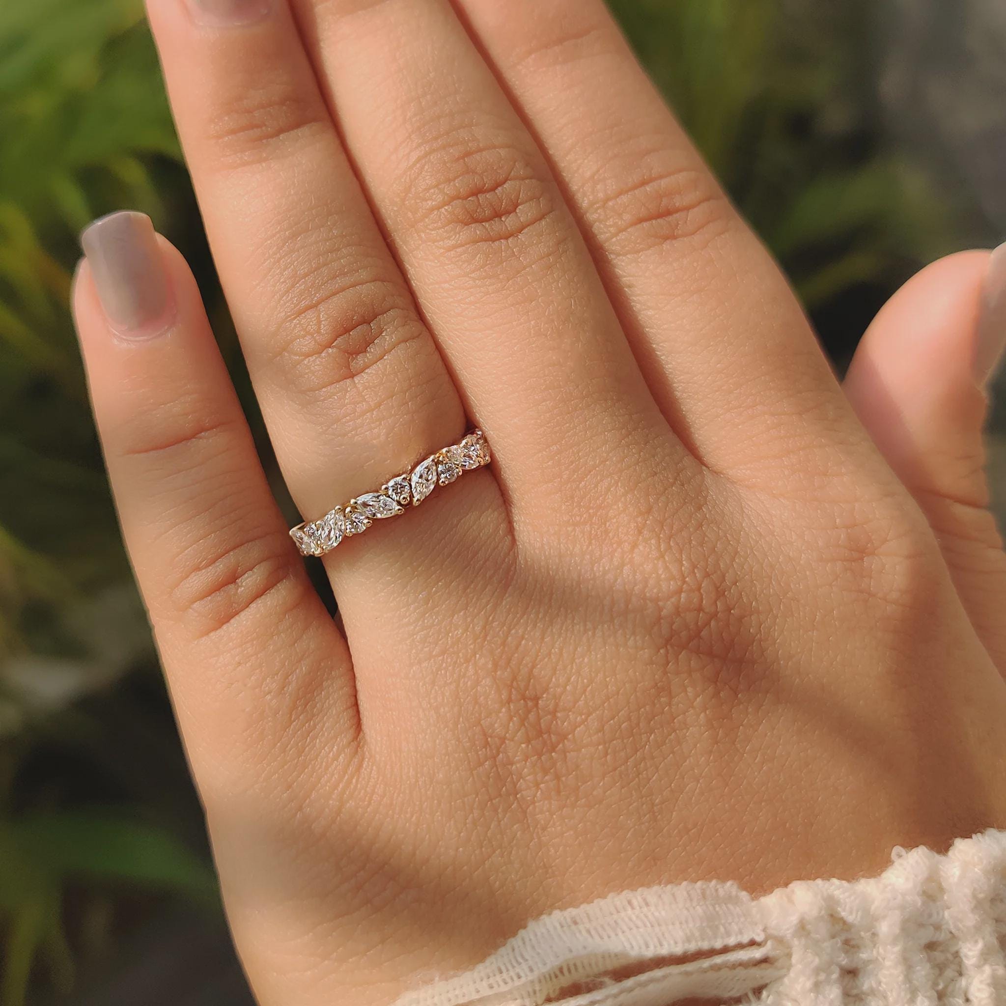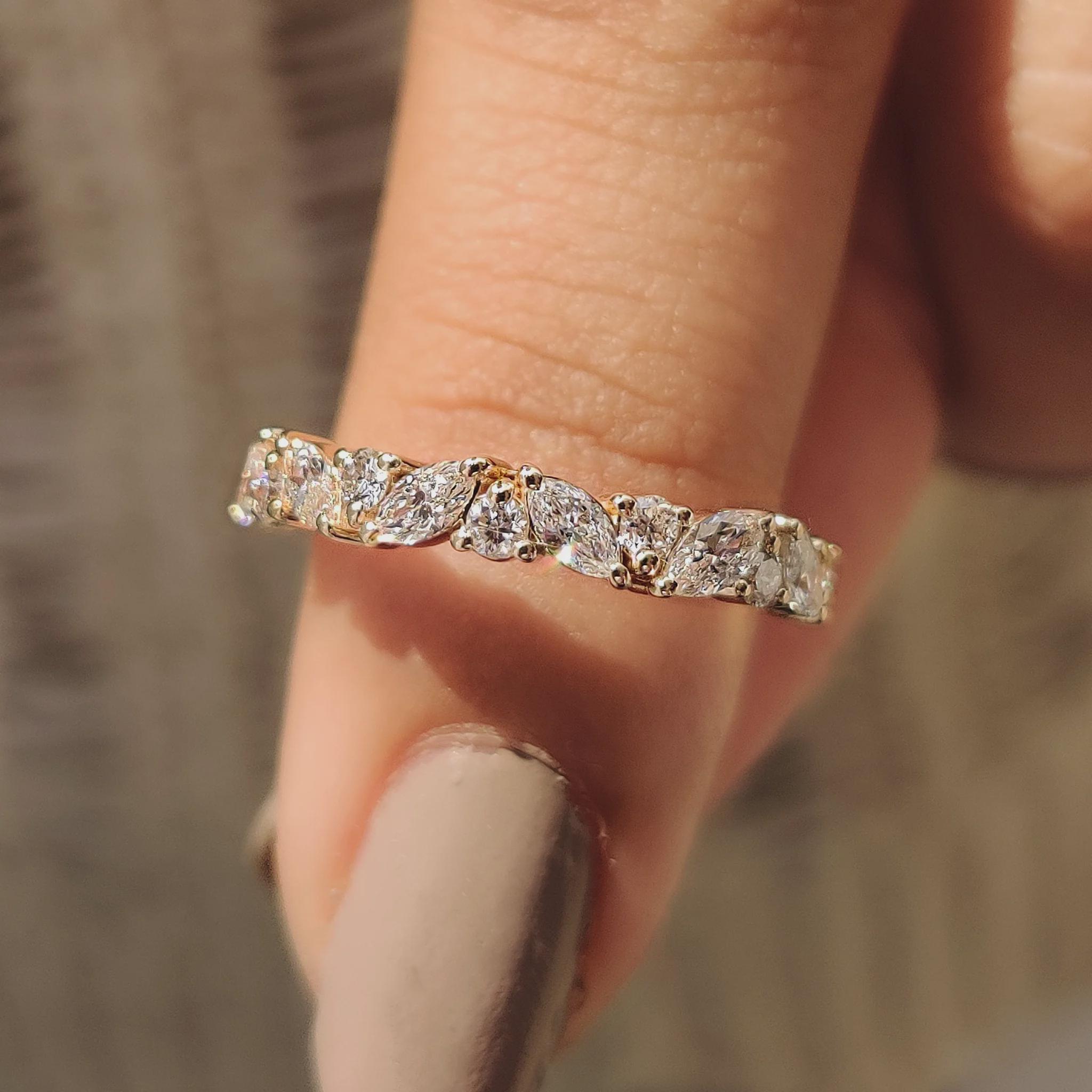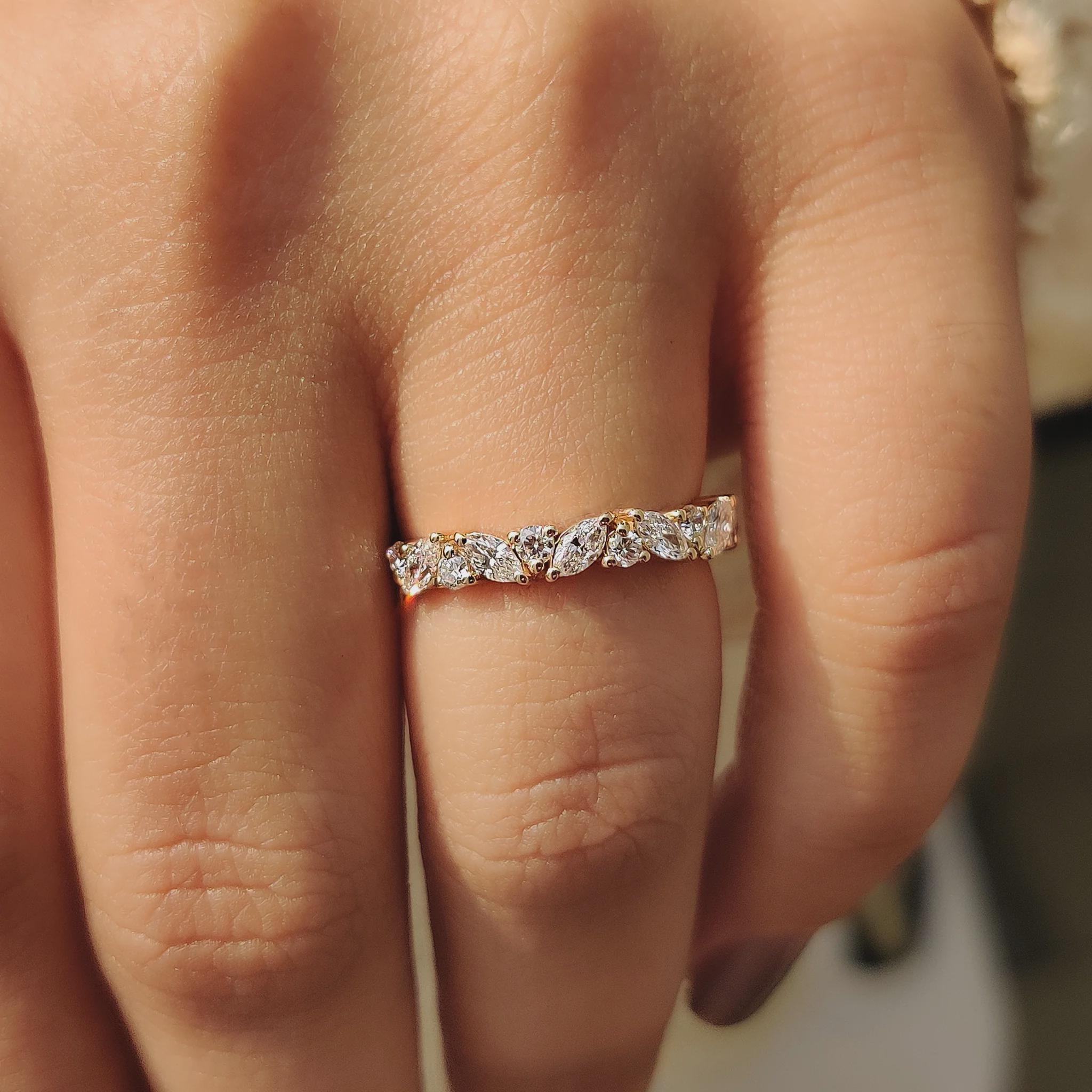 Looking for the perfect gift? The Marquise and Round Wedding Ring makes the perfect gift for occasions like engagements, weddings, or anniversaries. The recipient is sure to be impressed and delighted by its classic style.Marquise & Round Cut Eternity Ring – where timeless sparkle meets modern elegance. Handcrafted from solid 925 sterling silver, this luxurious ring features alternating marquise and round-cut stones, creating a continuous band of brilliance and refinement.