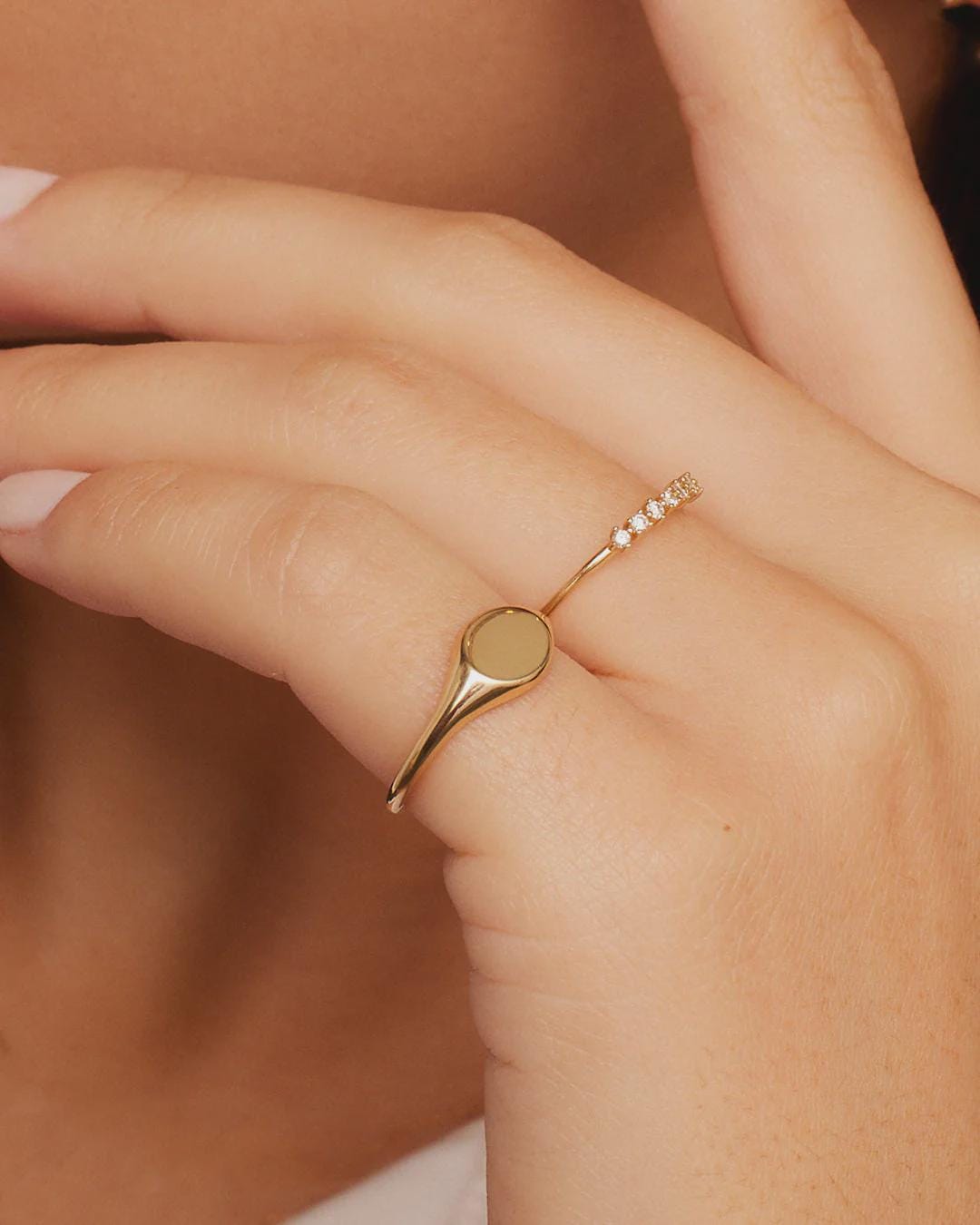 A timeless symbol of individuality — our 14K Gold Bespoke Signet Ring brings together modern simplicity and classic craftsmanship. Handmade from 925 Sterling Silver and plated with 14K Gold, this piece can be engraved with initials, symbols, or a meaningful date to make it uniquely yours.Anniversary • Graduation • Birthday • Wedding • Father’s Day • Everyday Statement