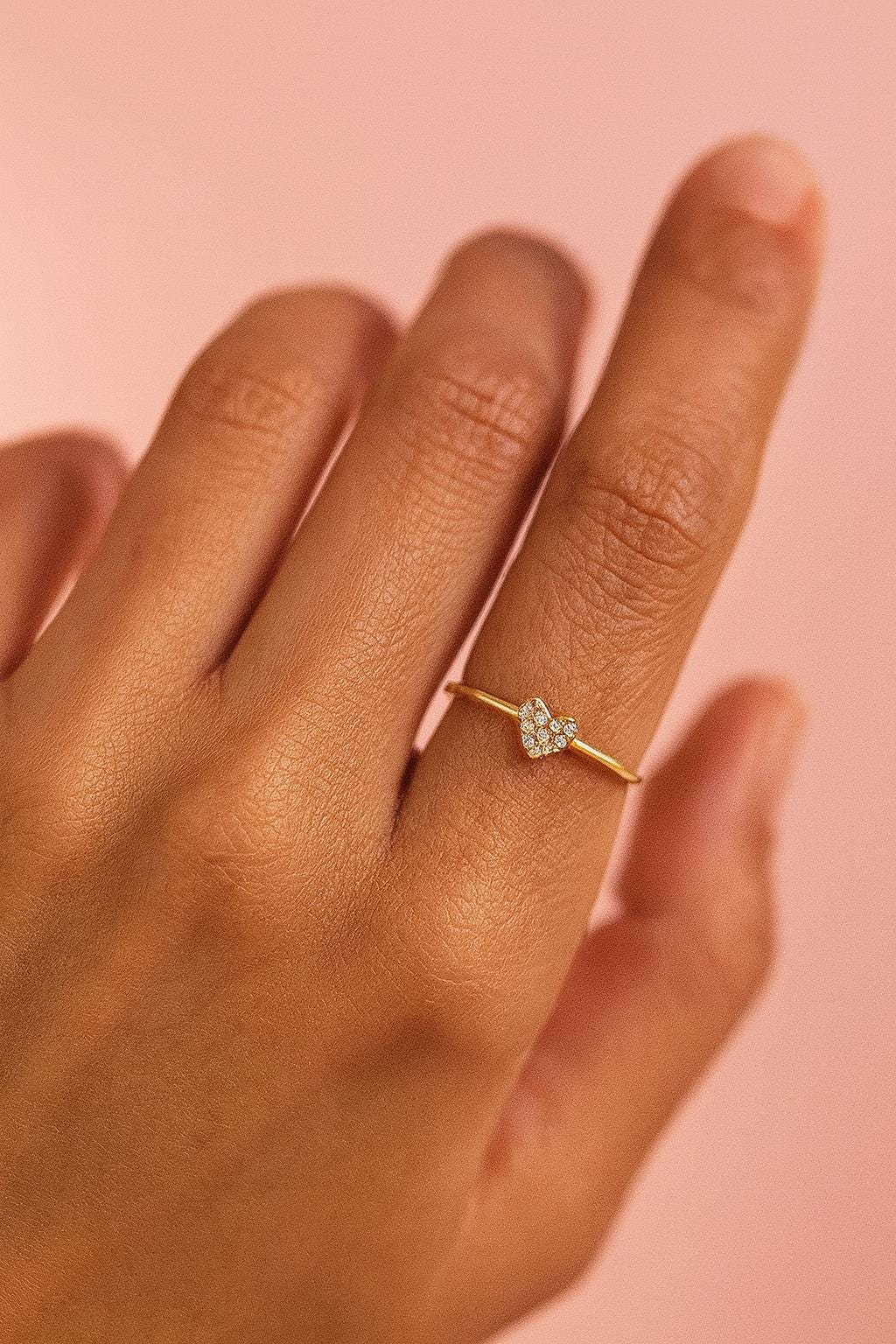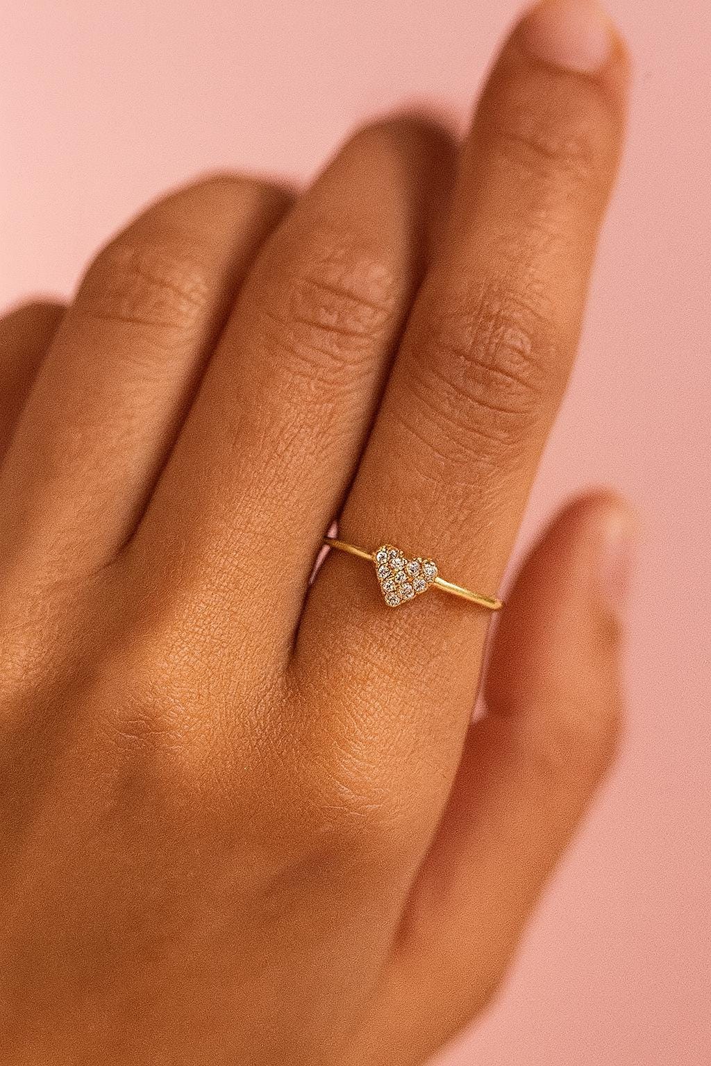 Shine with elegance and romance with our Diamond Pavé Heart Ring — a timeless piece that captures the sparkle of love. Crafted with a slim gold band and a heart-shaped pavé setting, this ring glimmers with tiny cubic zirconia or moissanite stones that reflect light beautifully from every angle.
