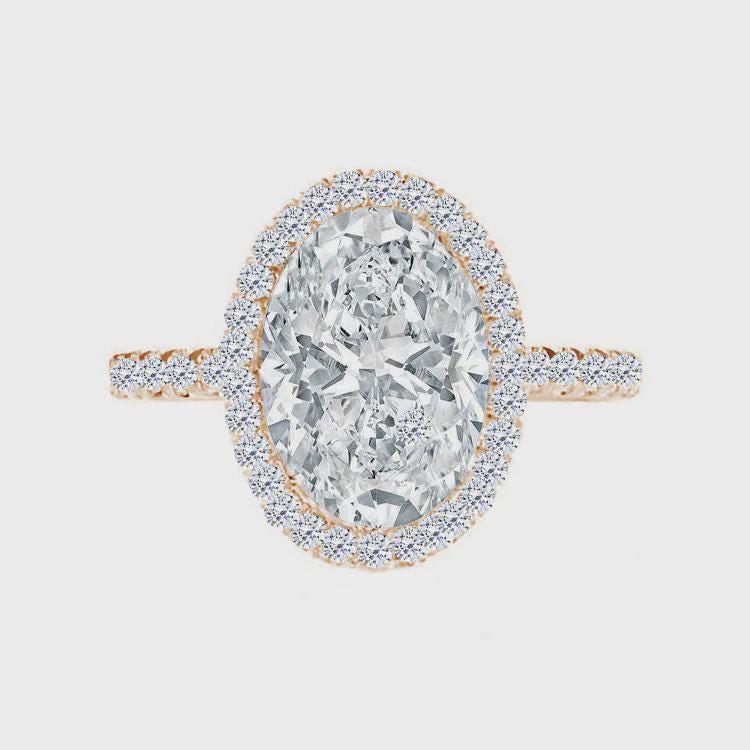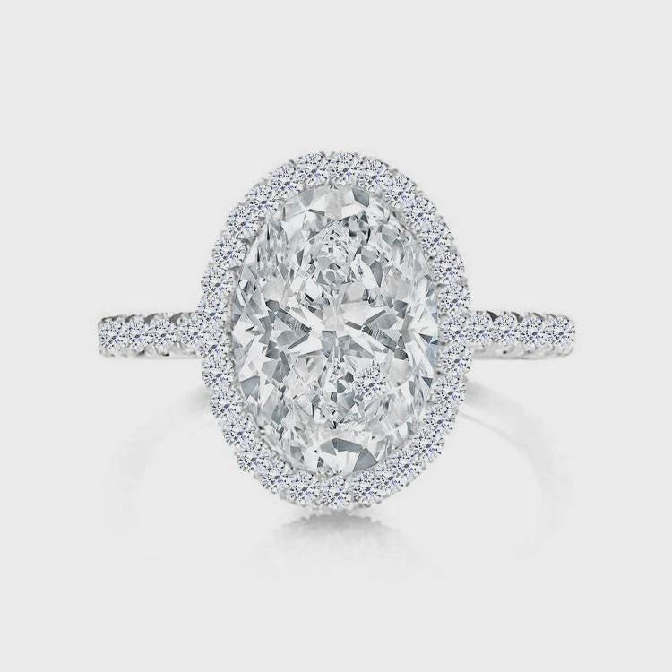 Make your moment unforgettable with this breathtaking oval halo moissanite engagement ring. The 3.0ct D-color moissanite center stone is surrounded by a halo of brilliant micro-pavé gems, creating an intense sparkle from every angle. Handcrafted in 14K solid white gold, this ring blends classic romance with modern sophistication — designed to shine for a lifetime.