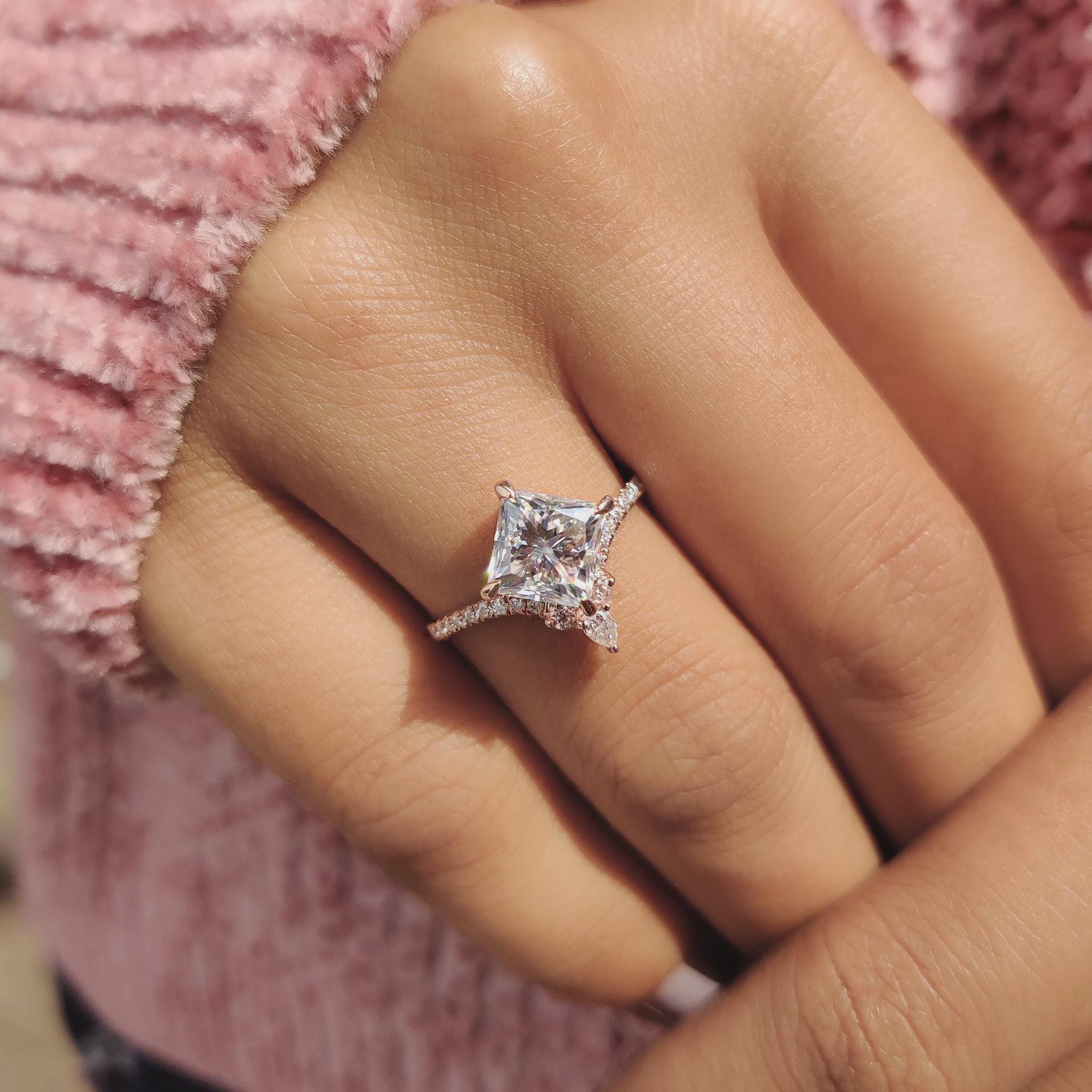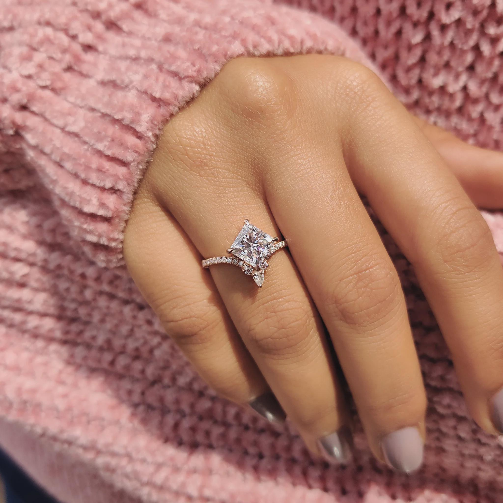 Brilliant princess ring with handcrafted precision. Unique Upside Down ring style for a standout look. Available in elegant rose gold ring or timeless gold proposal ring. Enhanced with pear cut Moissanite ring and fine side stones. Secure prong setting combined with a clean Compass Setting design. Moreover, Choose carat size to match the sparkle of a carat diamonds ring. Pick metals to match your style, including glowing rose gold ring. Every handmade ring is crafted with care and love.
