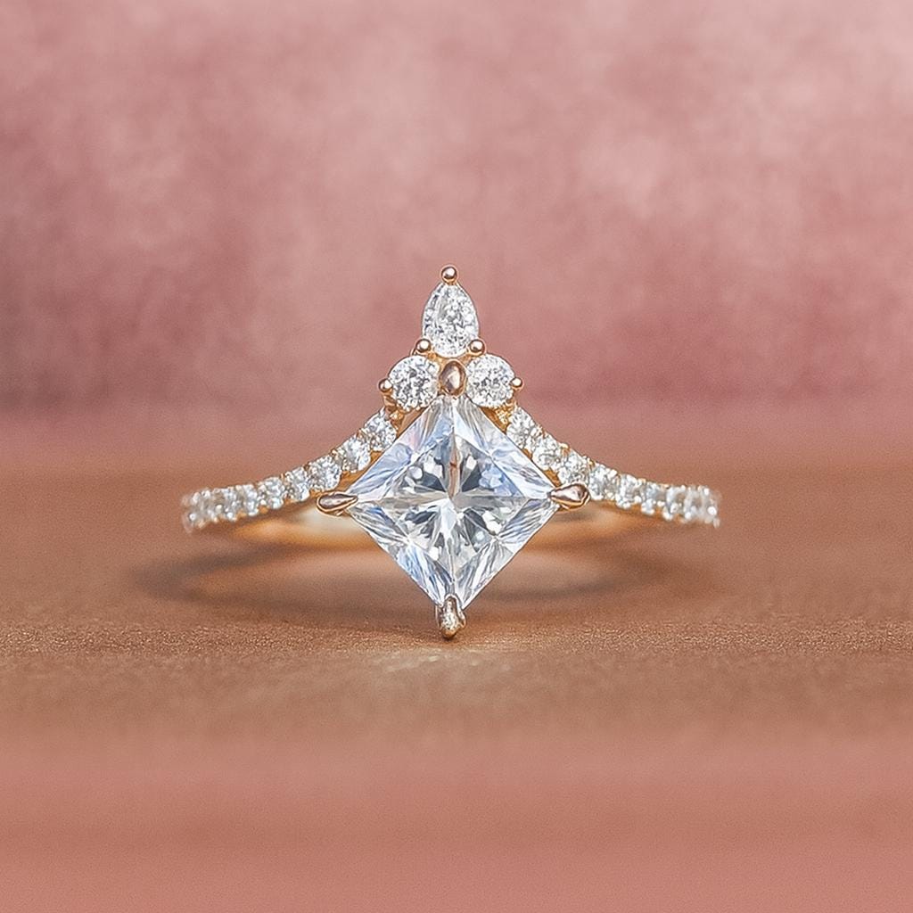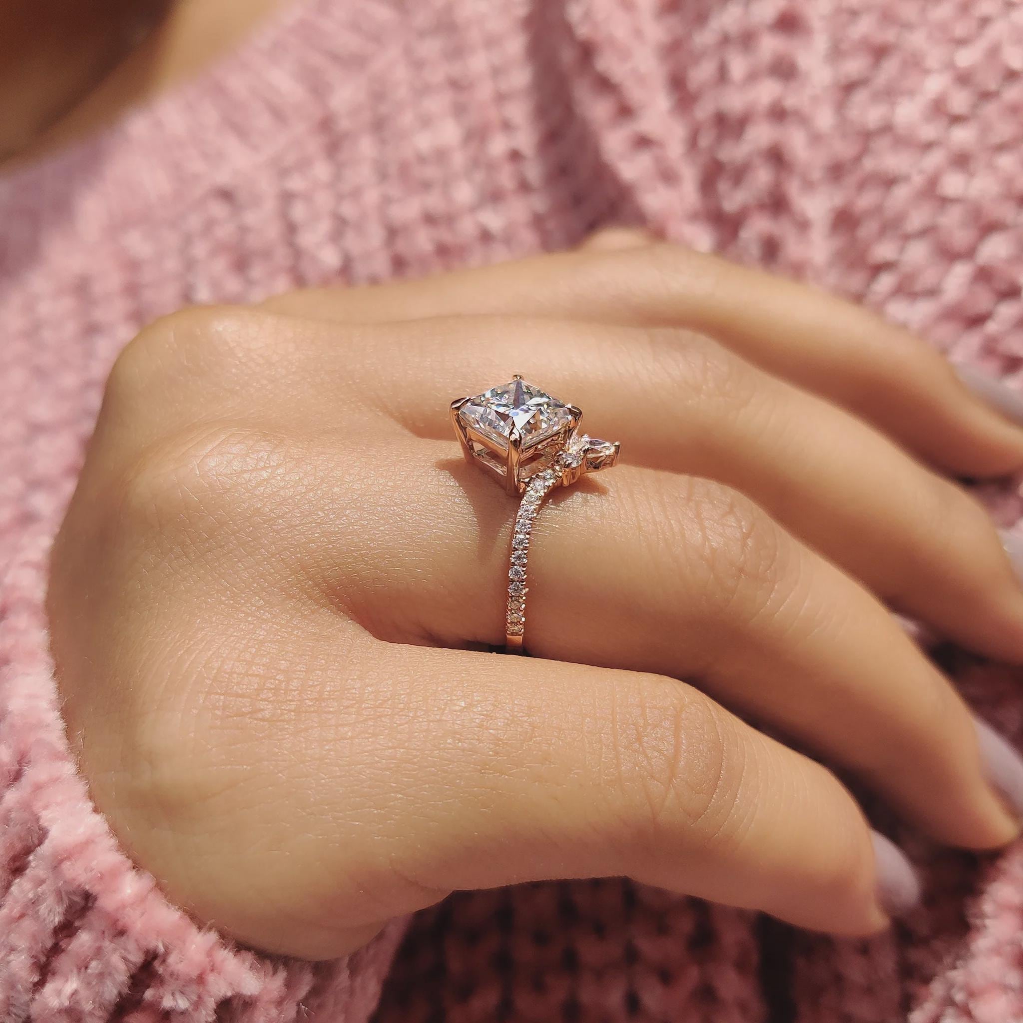 Description This princess cut ring is designed for those who seek elegance, brilliance, and modern charm in one perfect piece. While, The striking engagement ring captures attention with its sharp lines and radiant sparkle. Paired with a subtle prong setting, it reflects light from every angle with absolute grace.