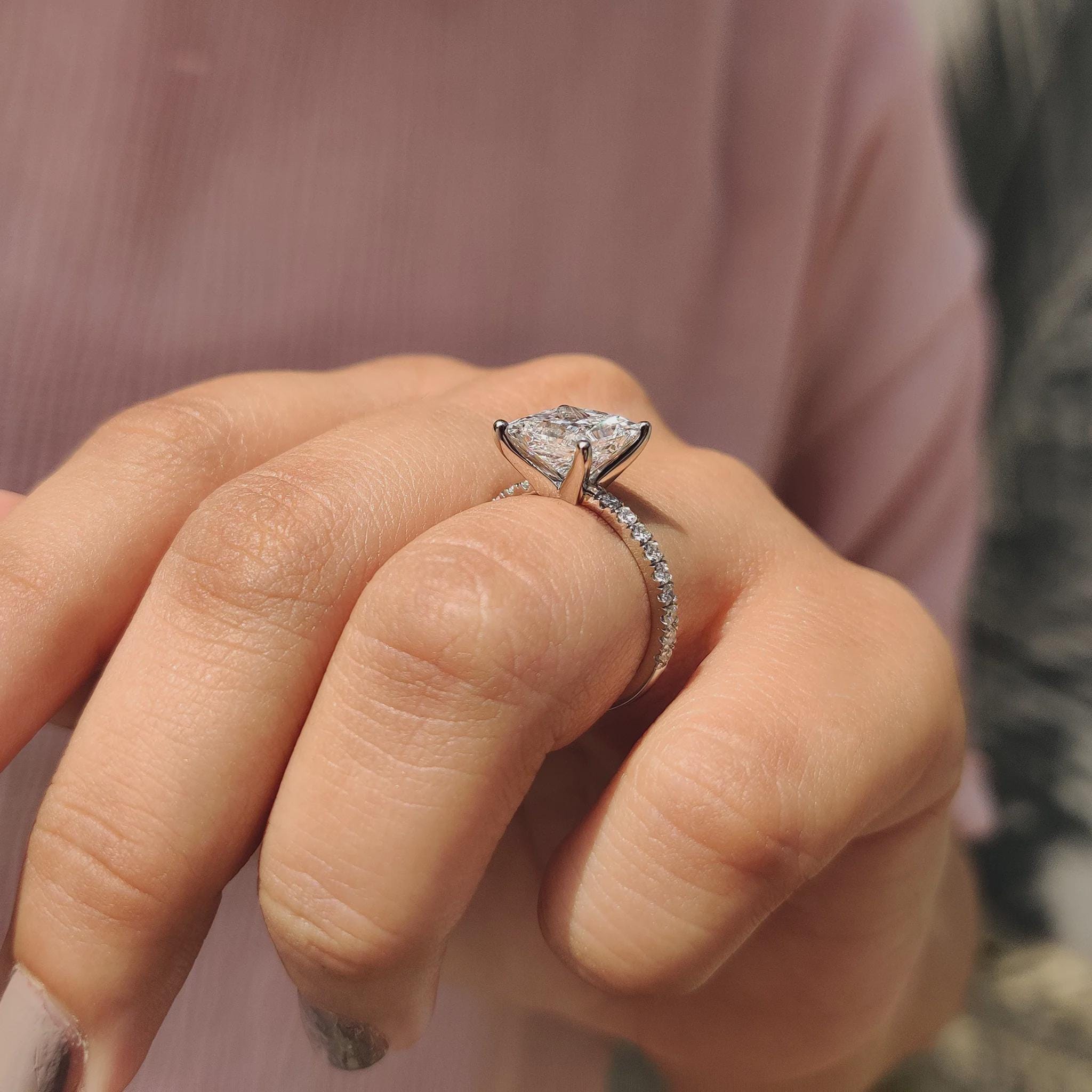 Center Stone Details Diamond Type : Lab Grown Diamond Shape : Princess Cut Carat Weight : 0.50 TO 3.00 CT Color : EF Clarity : VS