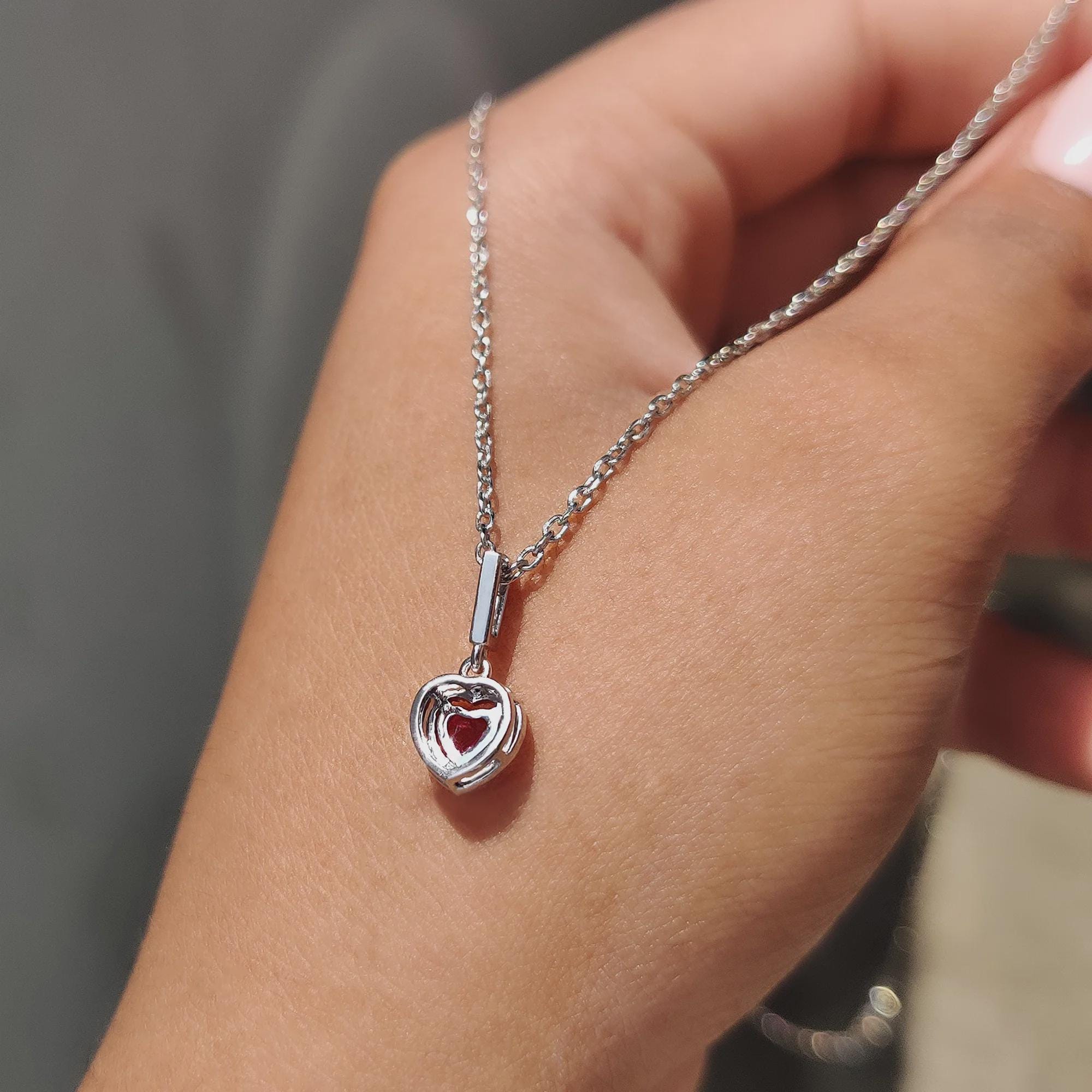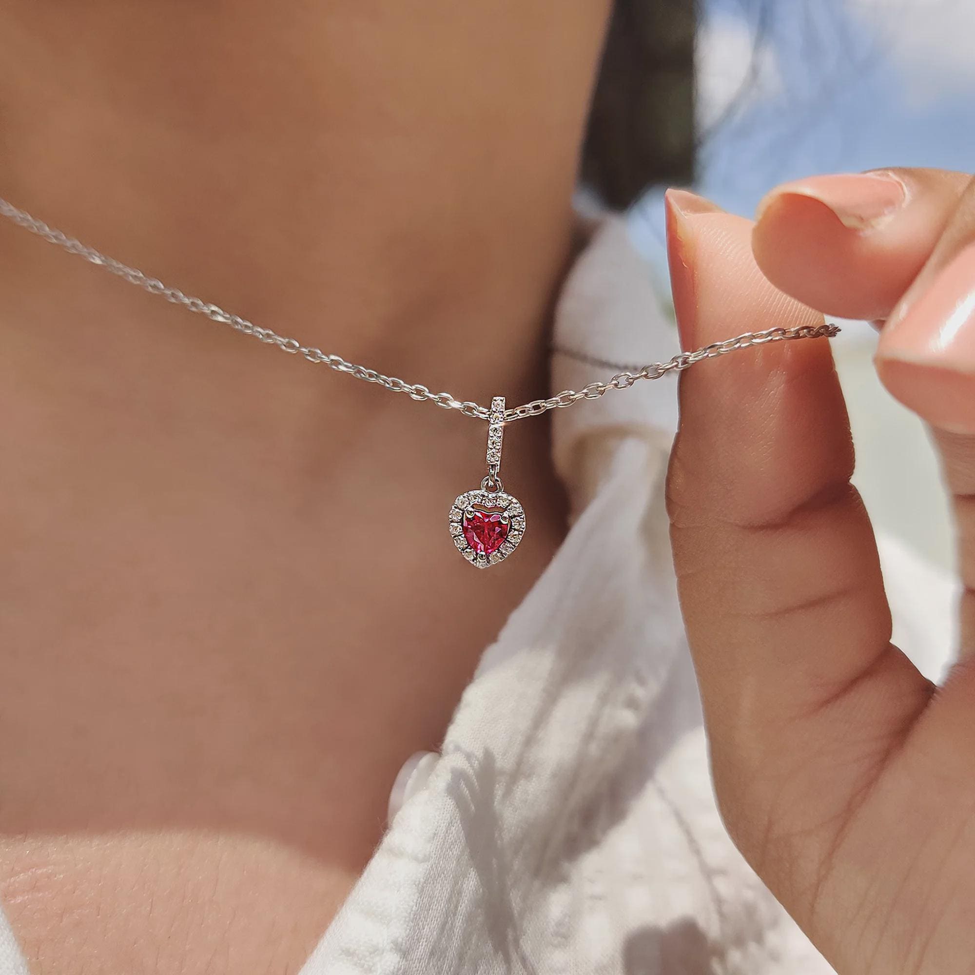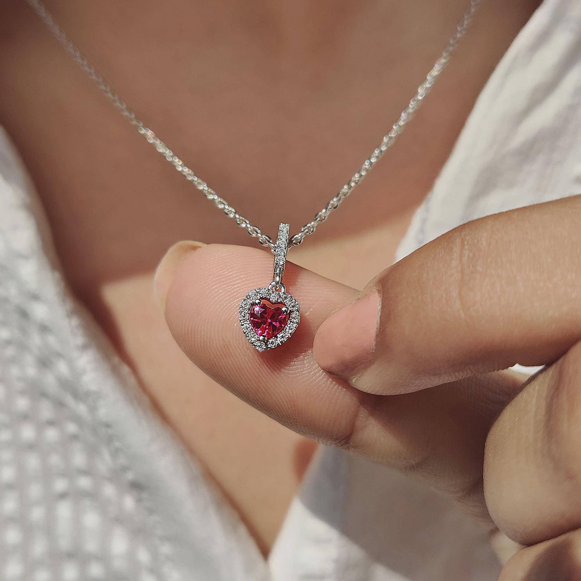 Set with premium moissanite heart pendant stones Crafted in real white gold pendant with a lasting shine Designed with a classic halo pendant for extra sparkle Includes a secure 3 round prong setting Comes in a vibrant ruby heart pendant tone This isn't just another pendant jewelry piece; it’s a statement. Our handmade jewelry process ensures every detail is perfected. We only use top-grade Carat Diamonds pendant quality for shine that lasts. You can always buy pendant pieces that match your unique style or customize them.