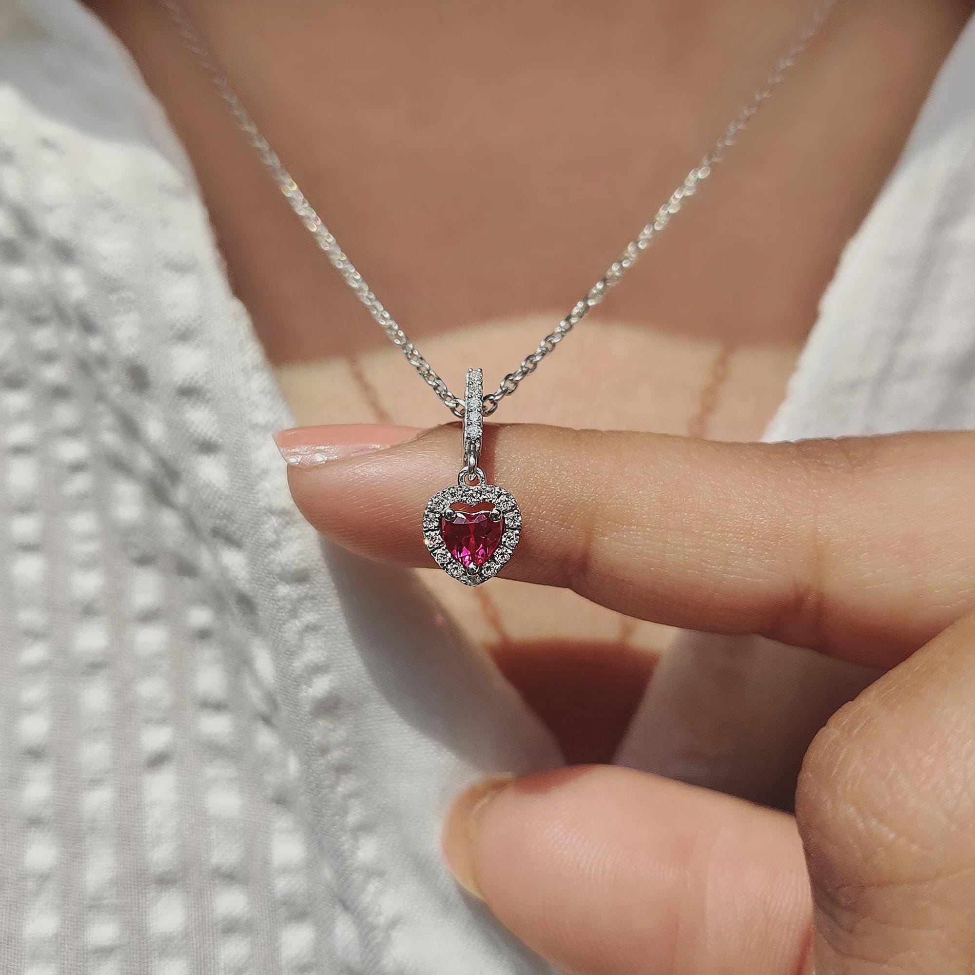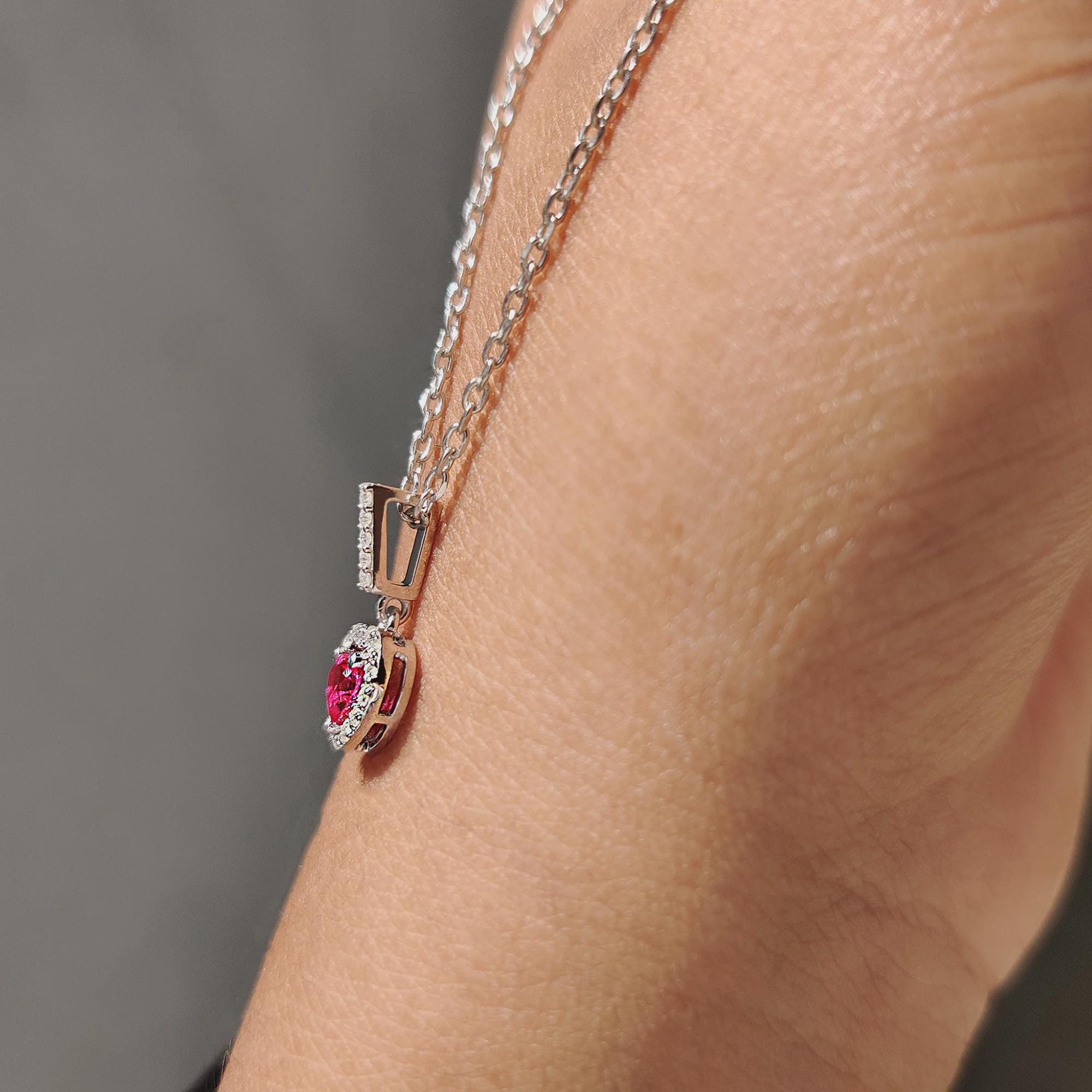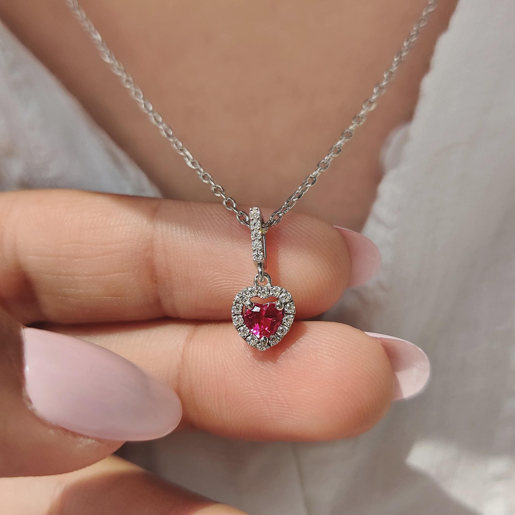 Set with premium moissanite heart pendant stones Crafted in real white gold pendant with a lasting shine Designed with a classic halo pendant for extra sparkle Includes a secure 3 round prong setting Comes in a vibrant ruby heart pendant tone This isn't just another pendant jewelry piece; it’s a statement. Our handmade jewelry process ensures every detail is perfected. We only use top-grade Carat Diamonds pendant quality for shine that lasts. You can always buy pendant pieces that match your unique style or customize them.