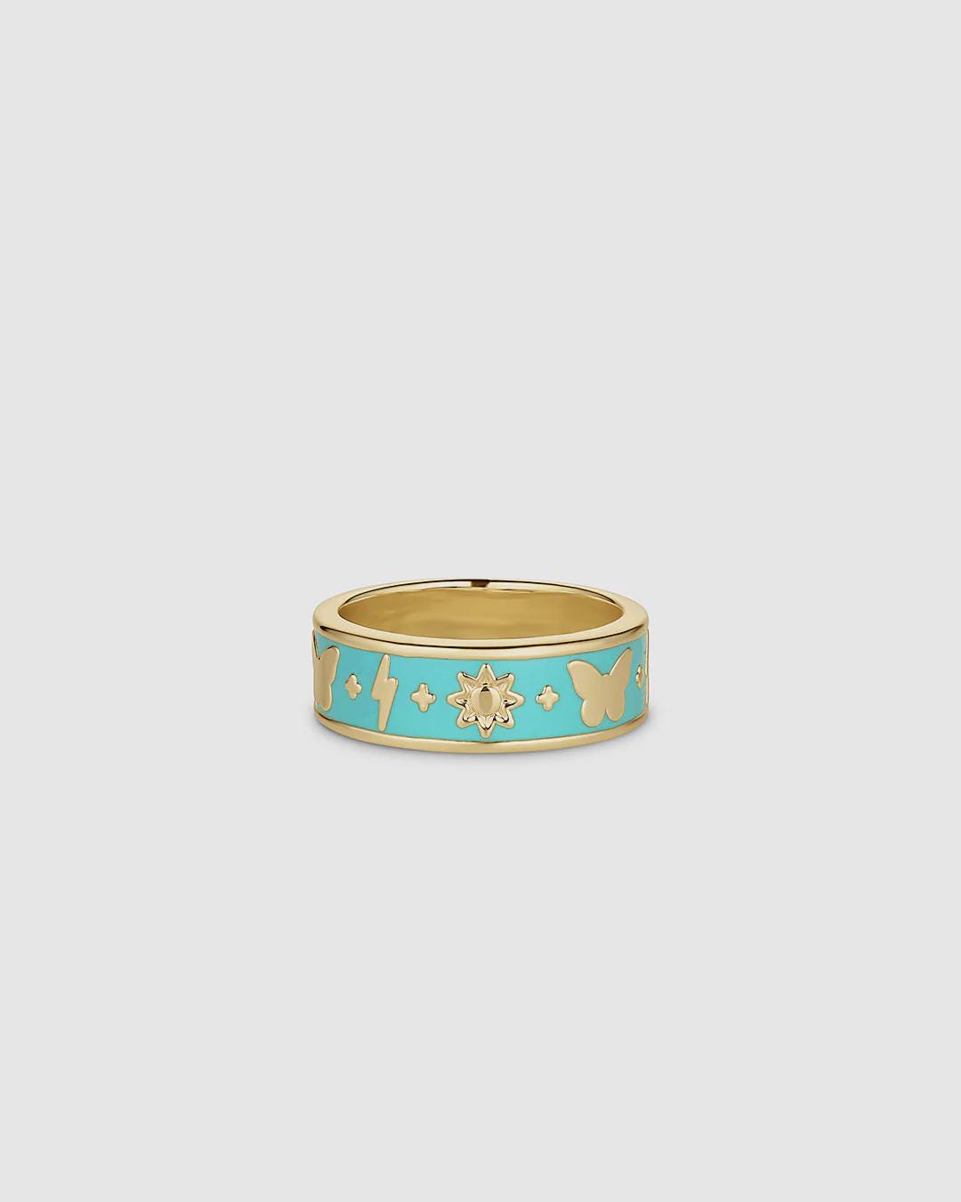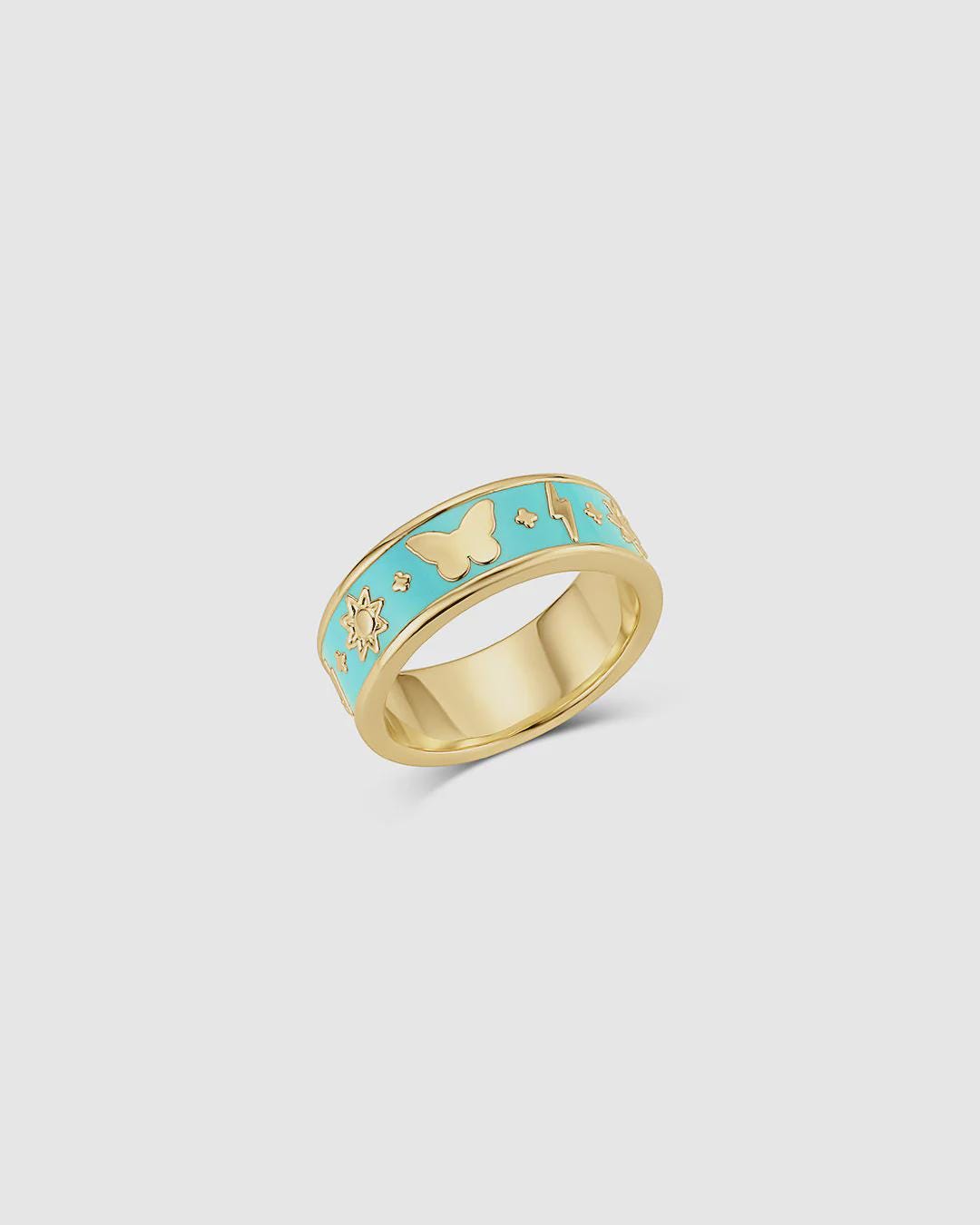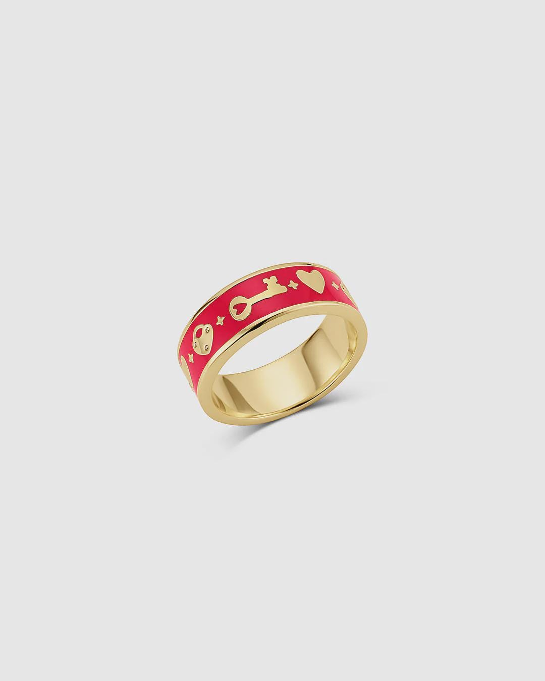 The Love U Ring is a vibrant, playful piece designed to celebrate love and individuality. Made from 925 sterling silver with high-quality gold plating, this ring features a colorful band decorated with charming heart, key, and star motifs — symbols of love, connection, and positivity.