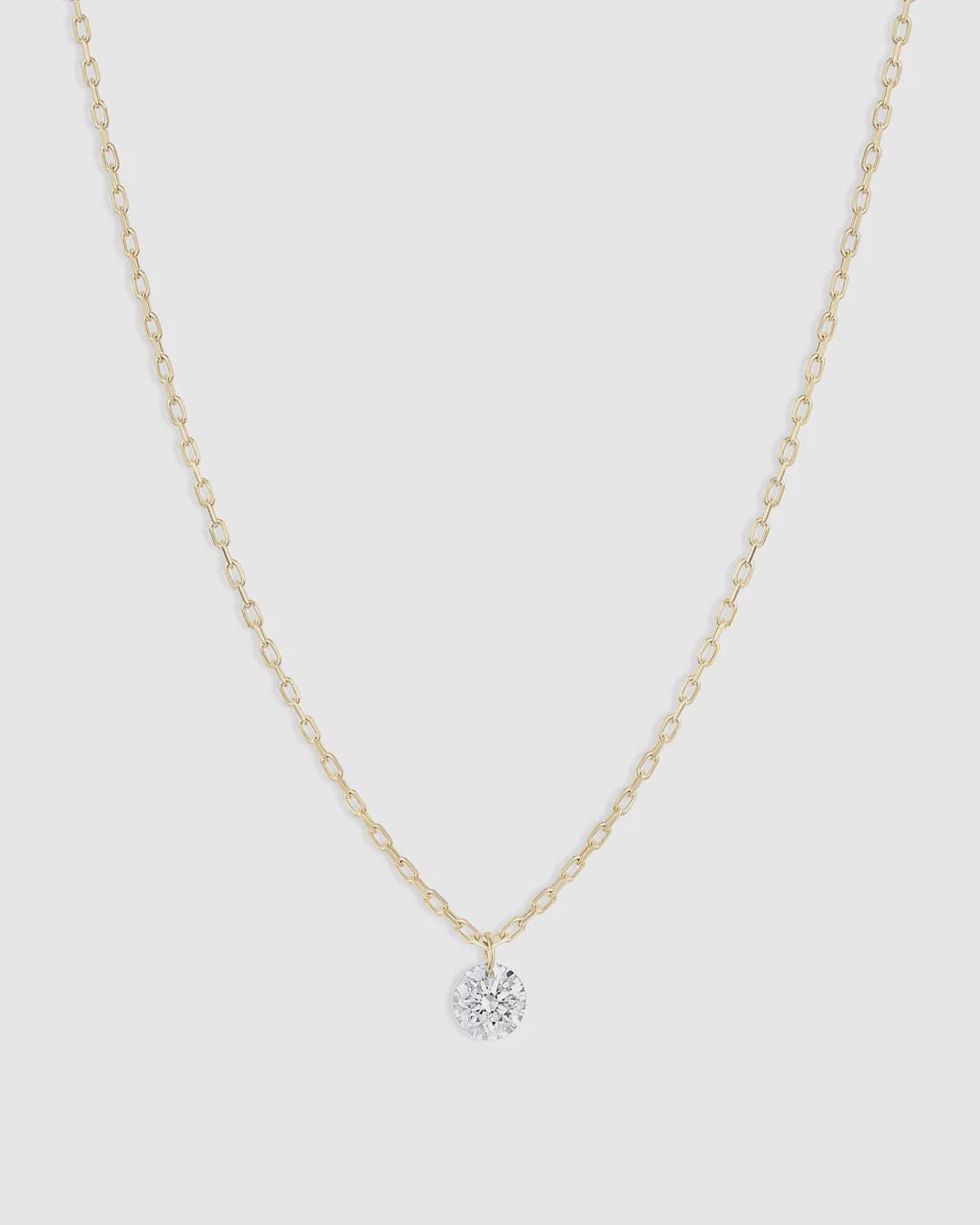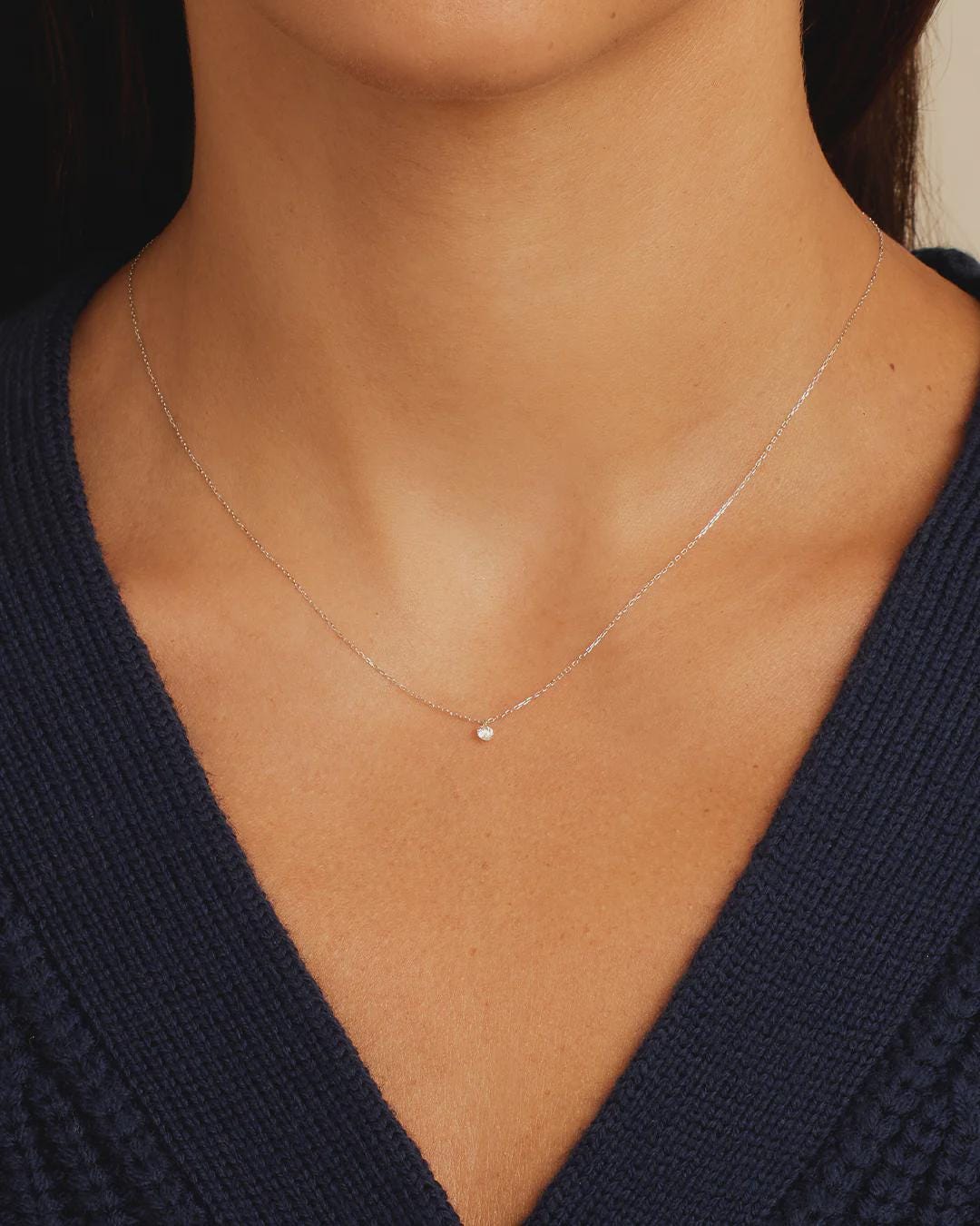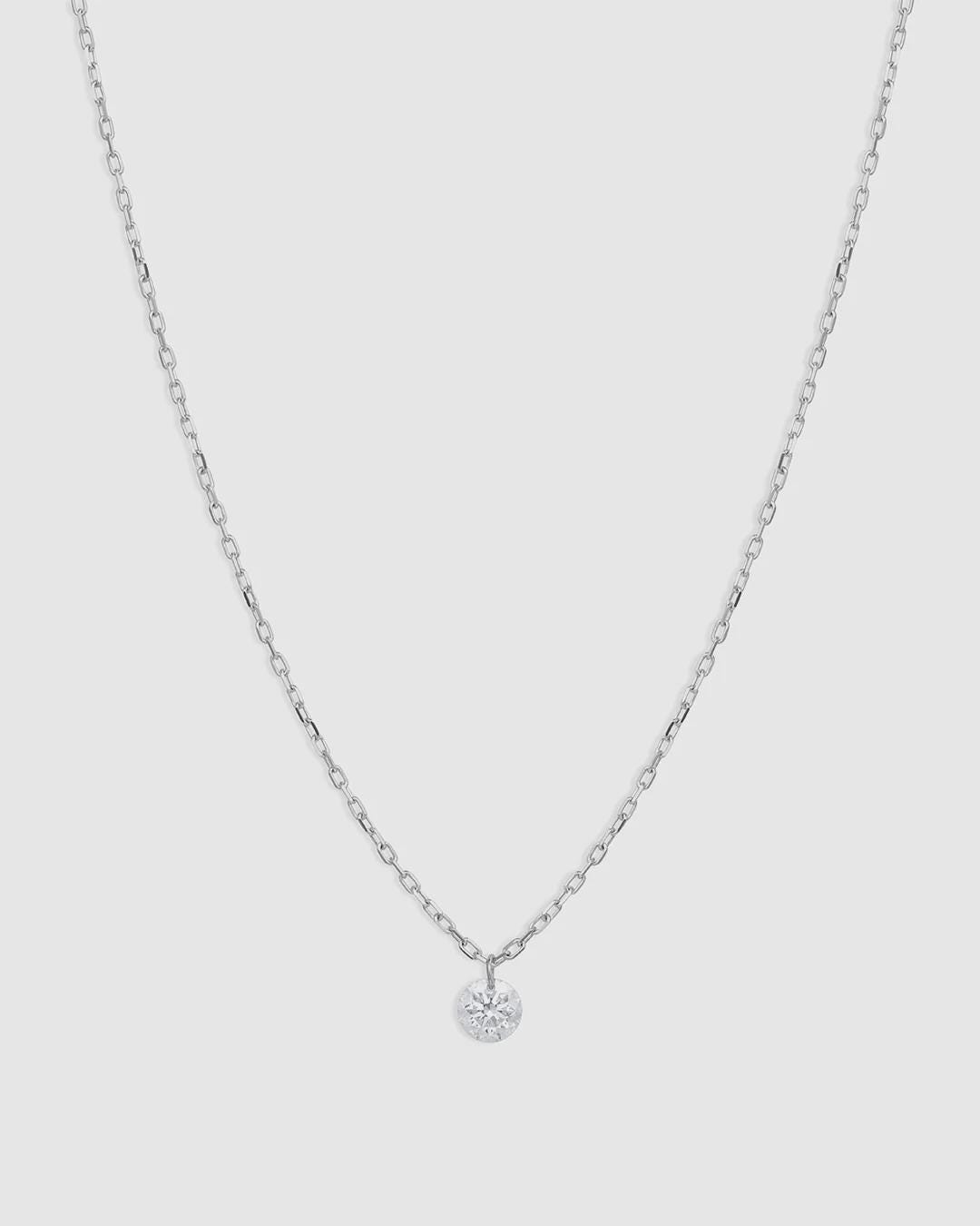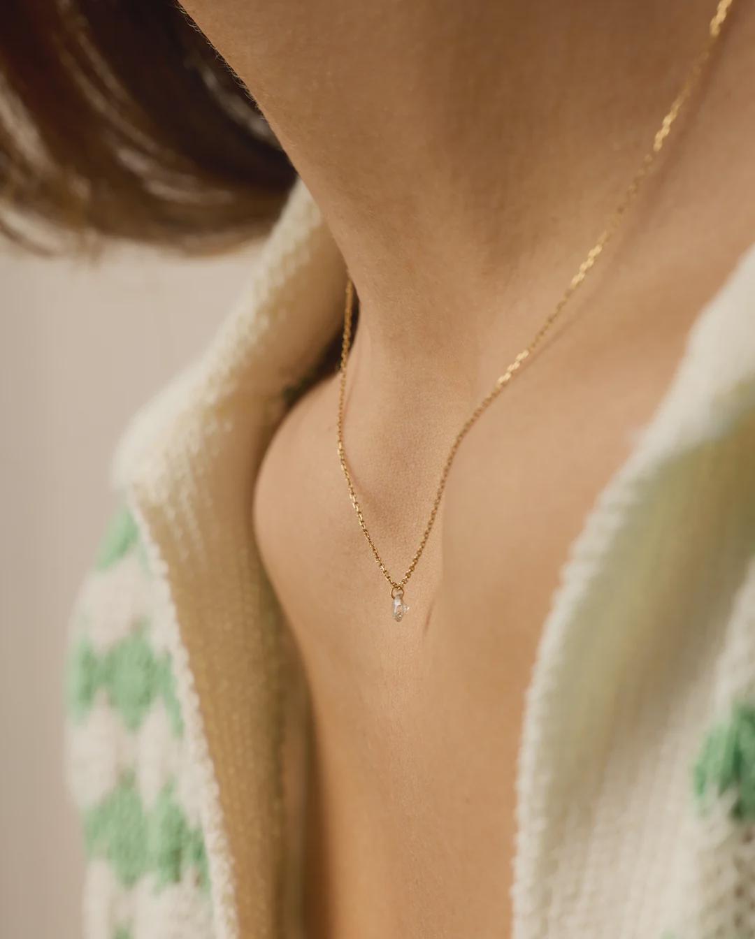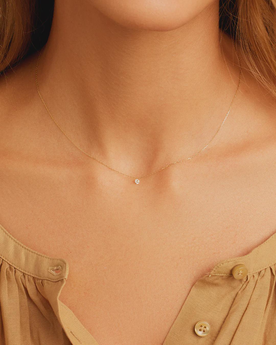 This elegant Floating Diamond Necklace offers a simple yet captivating sparkle. Perfect for everyday wear, this necklace adds a touch of elegant sparkle to every moment. Its simple design makes it suitable for both individual and layering with other necklaces.
