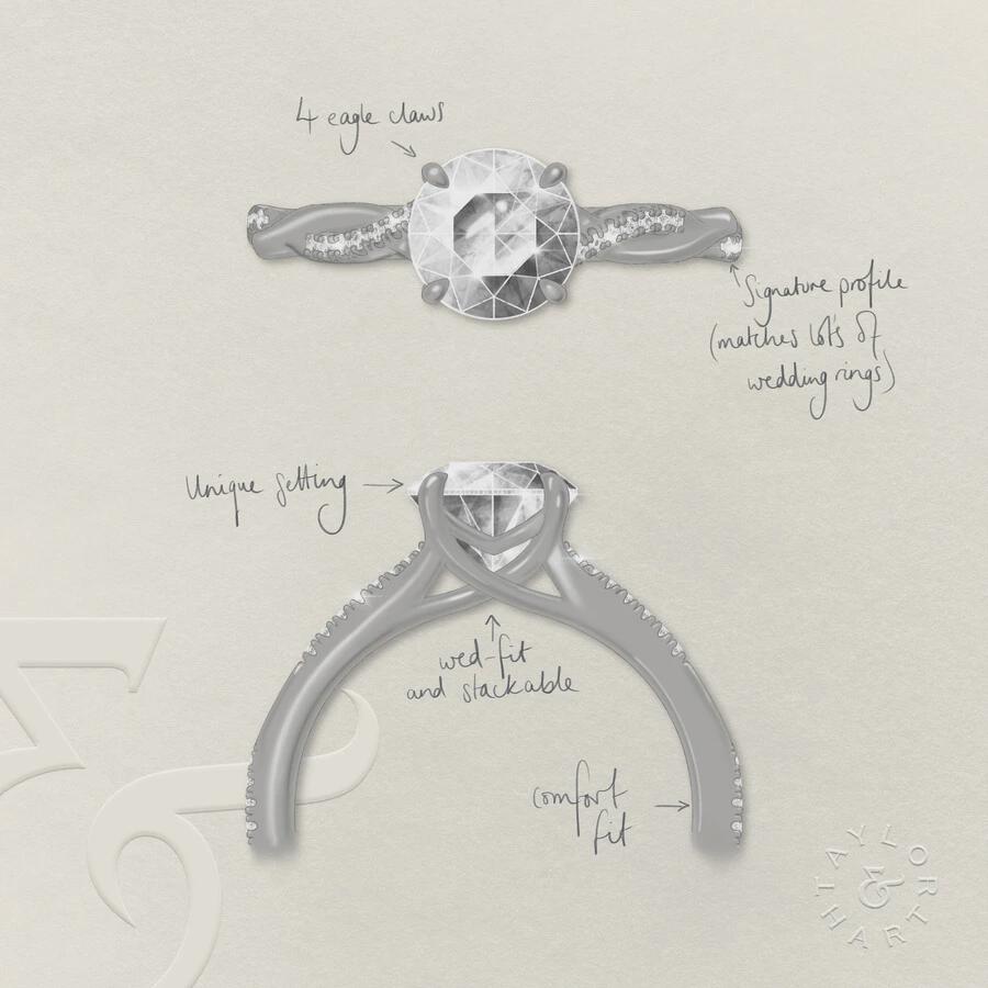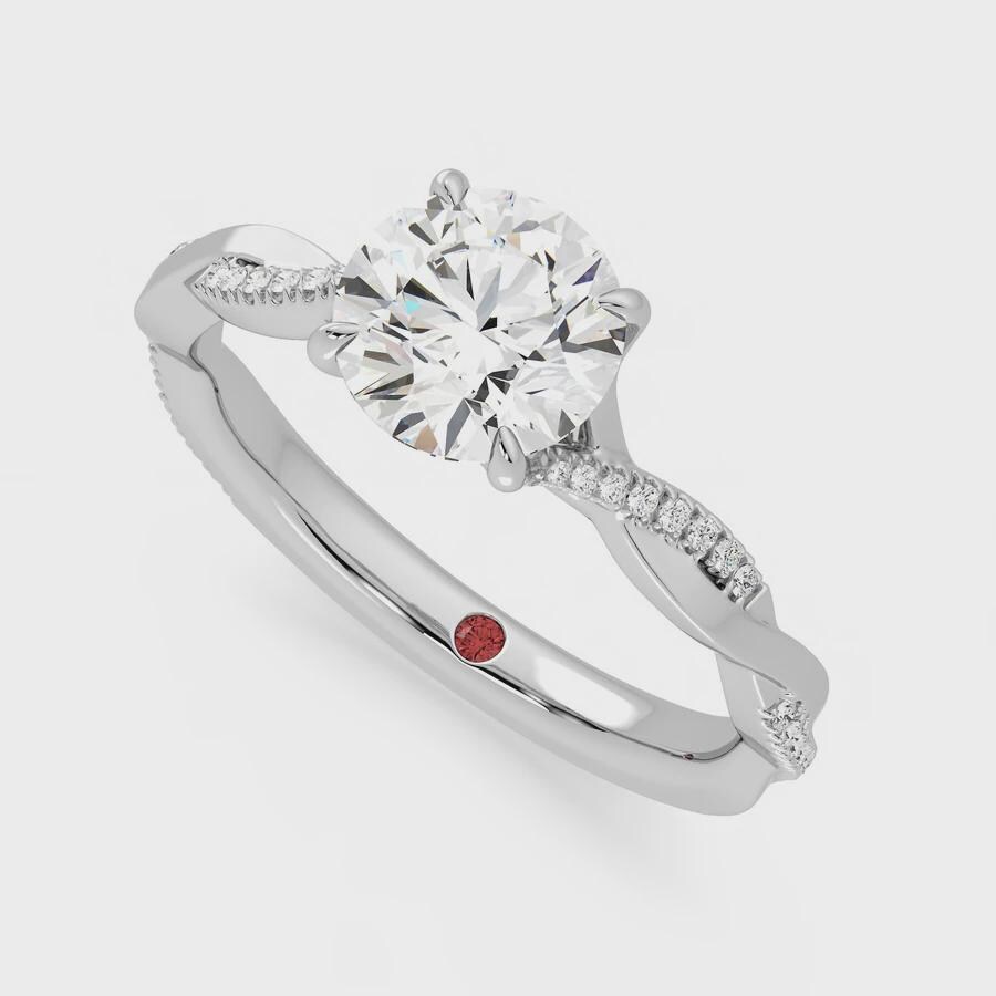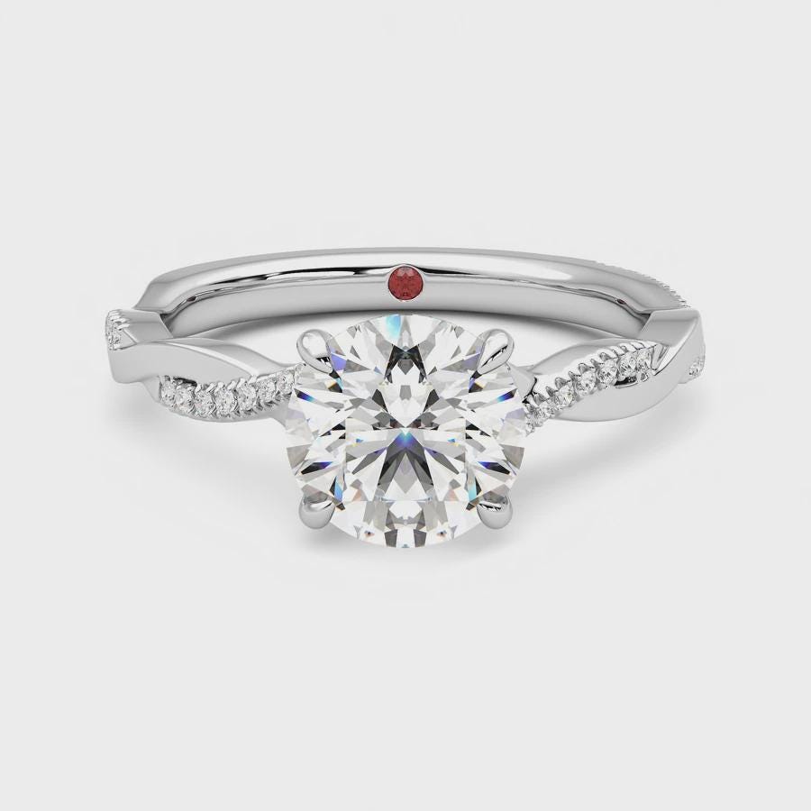 The Cassia Ring takes its name from the Chinese cinnamon—it symbolizes warmth, loyalty, and heartfelt connection. The round-cut moissanite stone at the center sparkles with its flawless brilliance from every angle. The spiral (twist) shape on the side of the band represents the union of two hearts. The red stone detail on the inside symbolizes the eternity of love. With its long-lasting durability and handcrafted craftsmanship, it is an elegant expression of modern romance.
