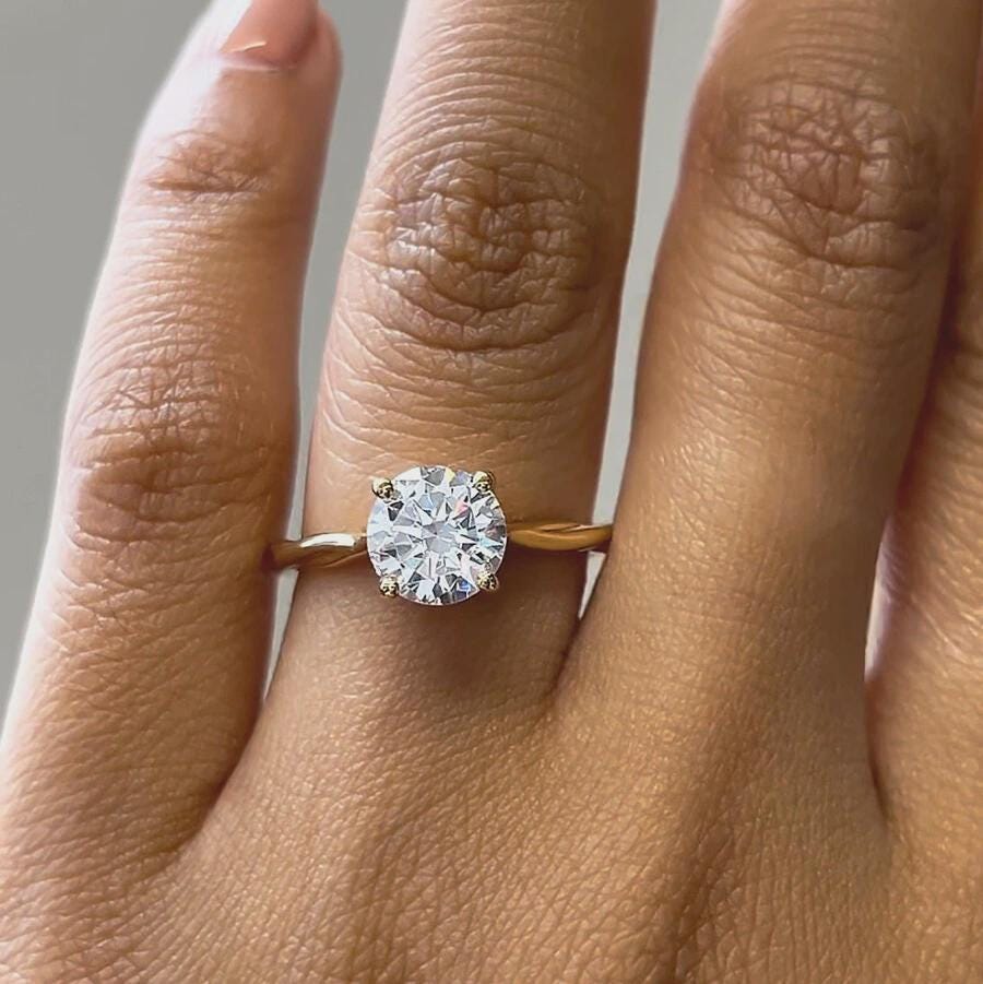 Center Stone: Round-cut diamond/moissanite (1.50 ct)
