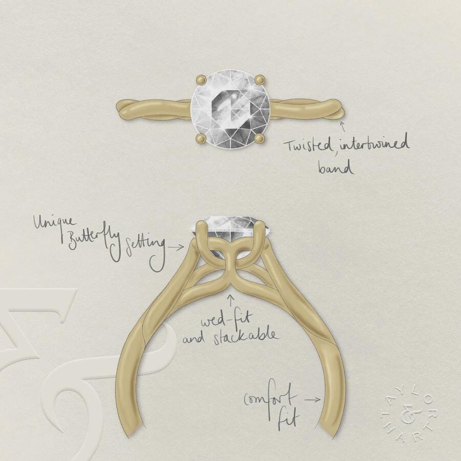This modern solitaire ring with butterfly details is both minimal and meaningful. A unique choice for a promise, engagement, or marriage proposal.
