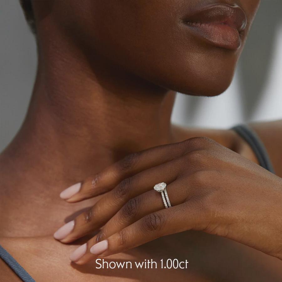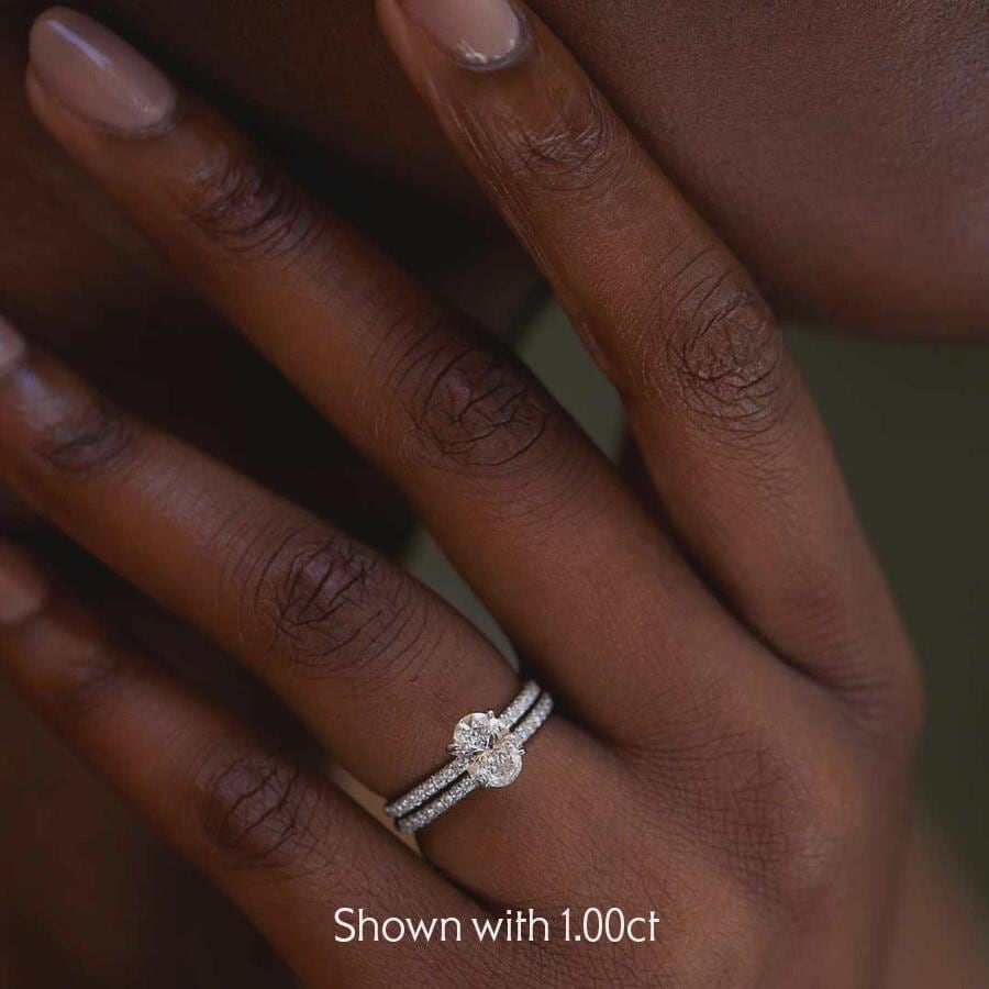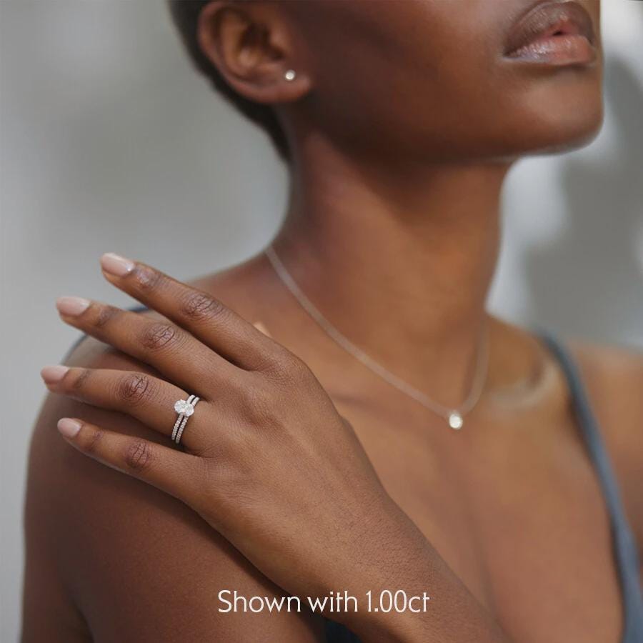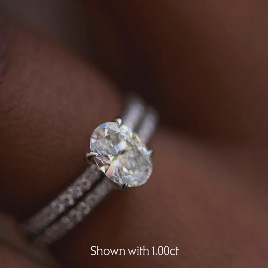 Center Stone: Oval-cut diamond/moissanite
